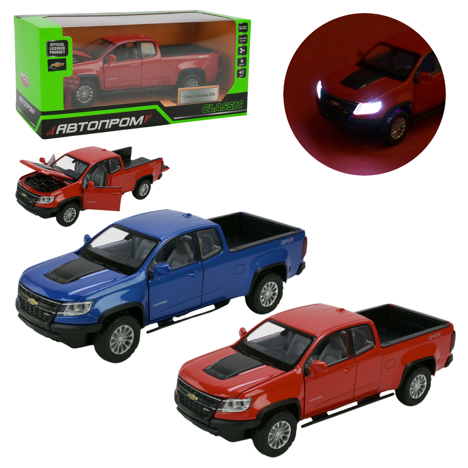 Машина мет. АВТОПРОМ арт. 68442 (48шт/2)1:31 Chevy Colorado ZR2,батар, світло,звук,відкр..двері,короб. 20*11*10см