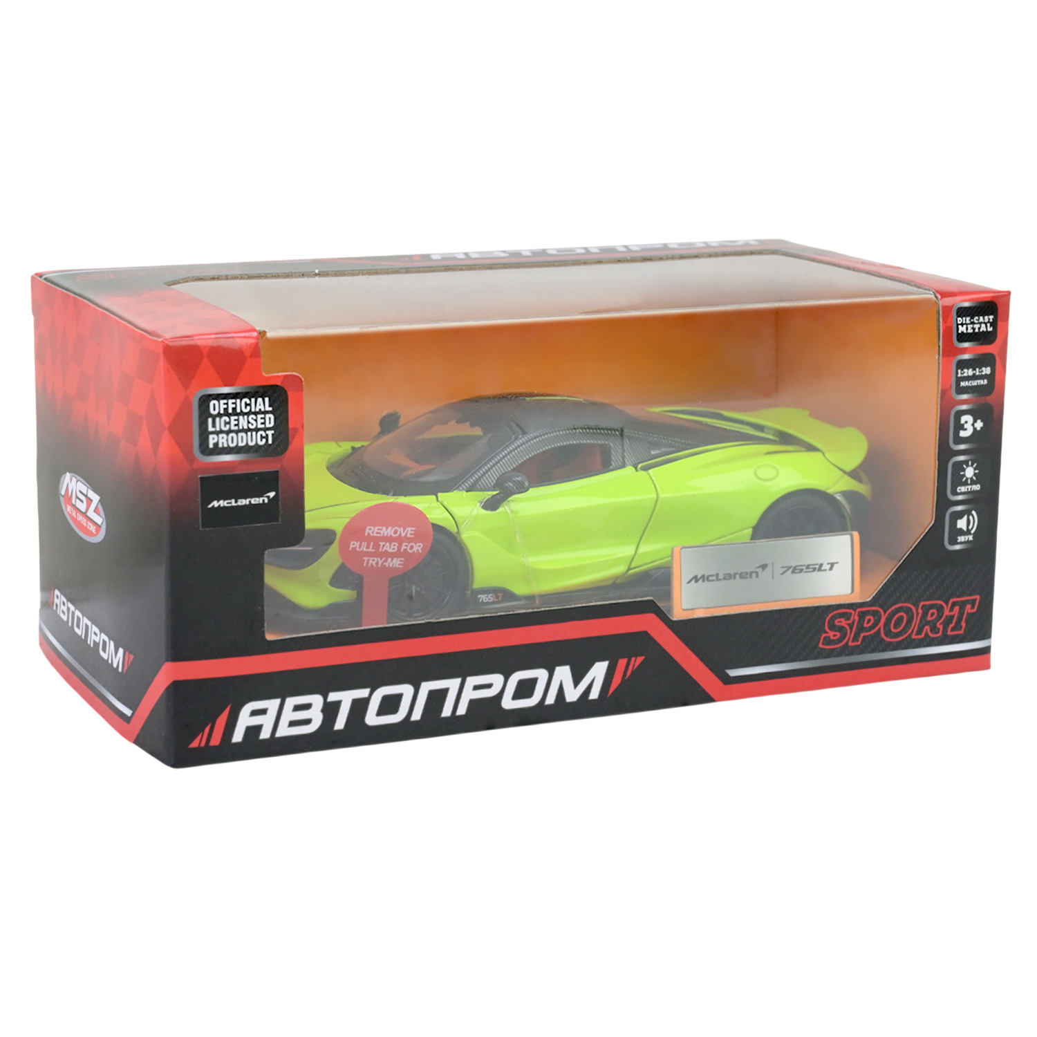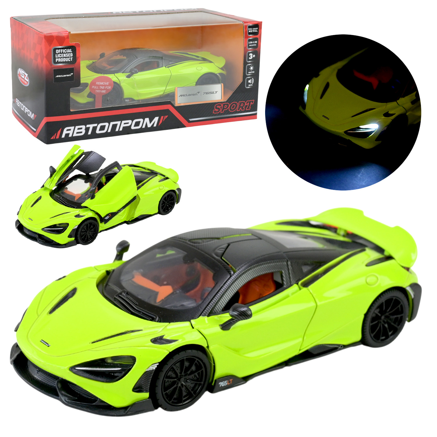 Машина мет. АВТОПРОМ арт. 68709(G) (48шт/2) 1:31 McLaren 765 LT, батар,світло,звук,відкр.двері,кор. 18*9*8см