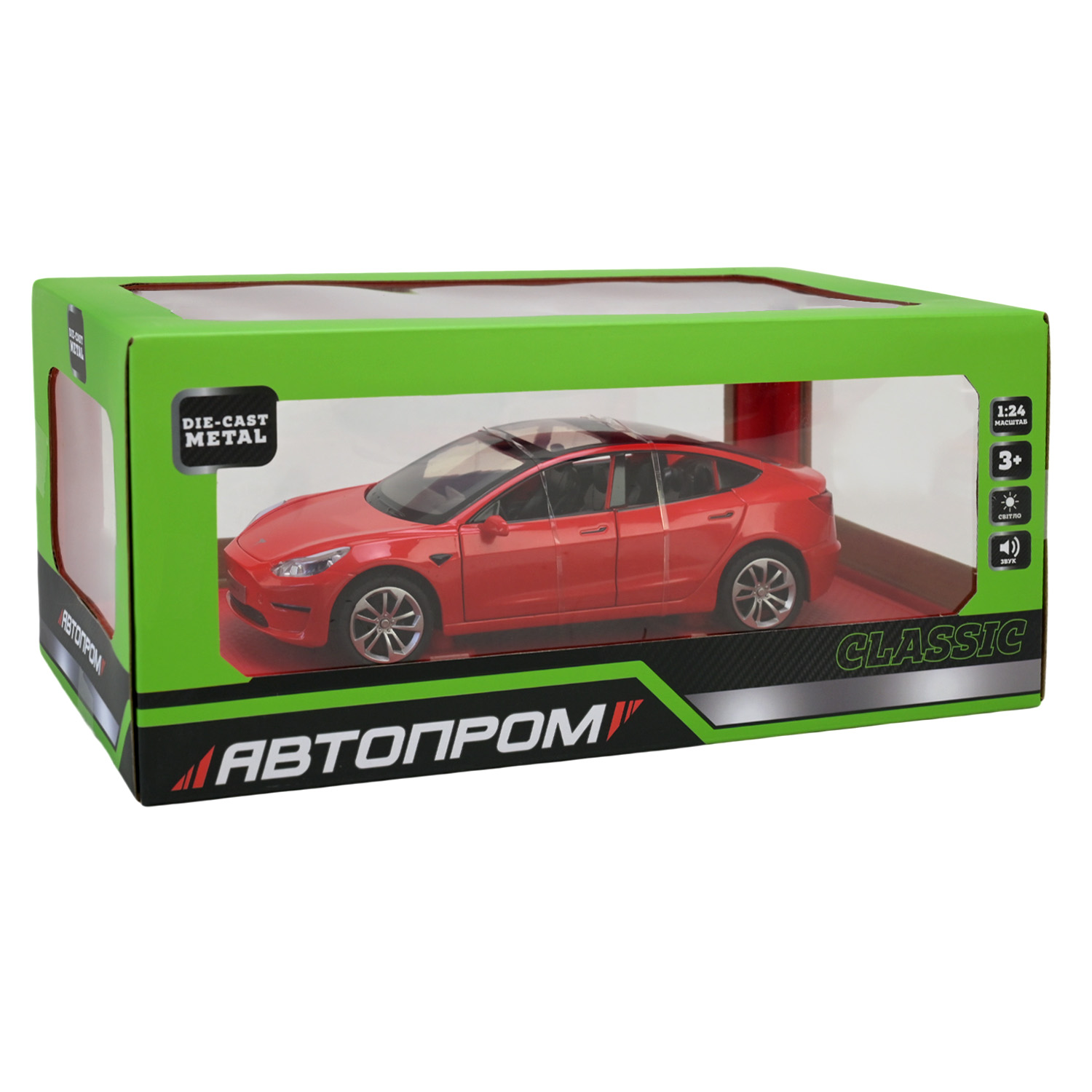 Машина мет. АВТОПРОМ арт. AP7728 (12шт/2) 1:24 Tesla model 3, батар,світло,звук,відкр.двері,короб. 28*16*12,8см