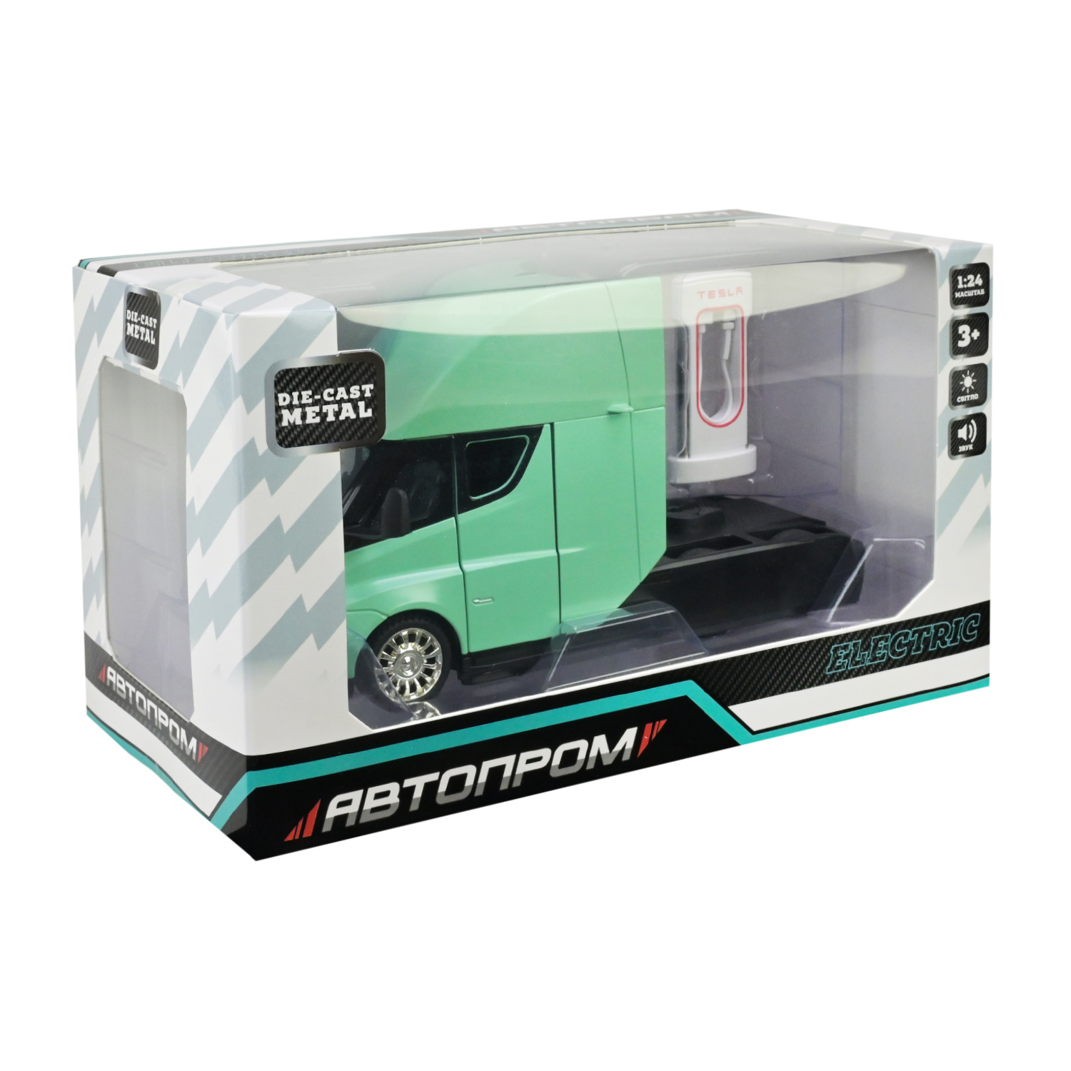 Машина мет. АВТОПРОМ арт. AP7731 (12шт/2) 1:24 Tesla semi truck head, батар,світло,звук,відкр.двері,короб. 25*12,5*15см
