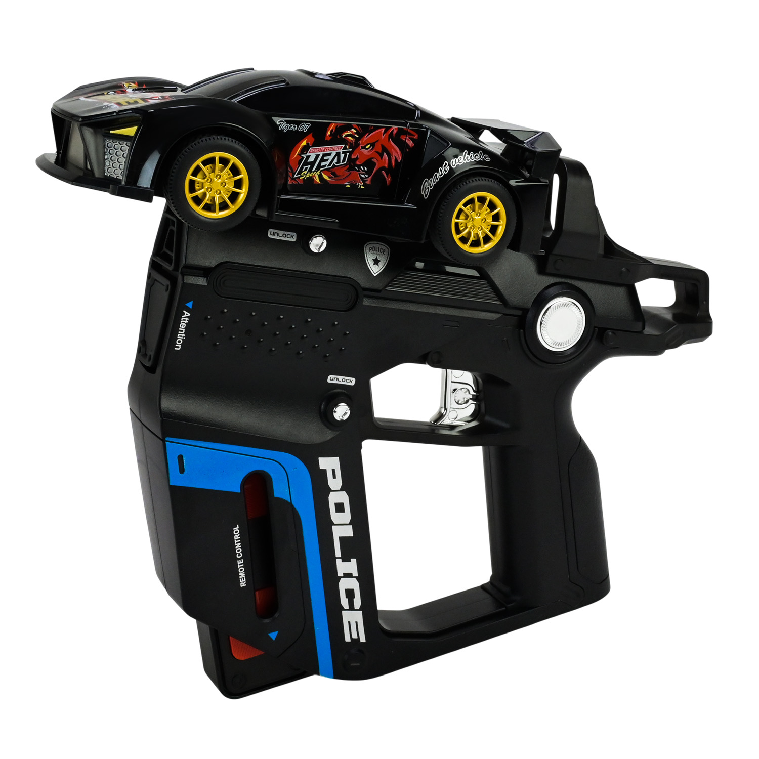 • Зручне зберігання — пістолет виконує роль зручної бази для зберігання, на якій надійно фіксуються машинка та пульт керування.
