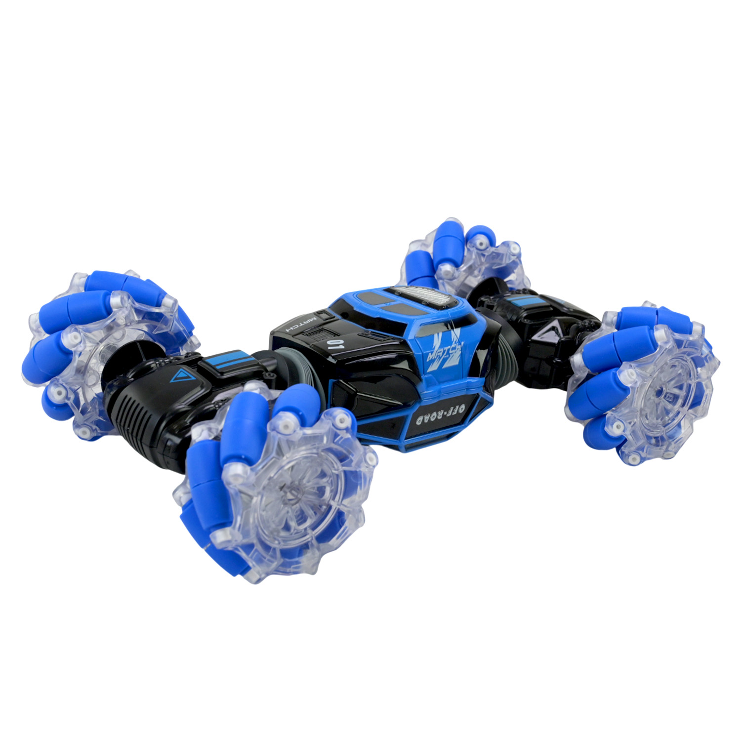• Машинка дуже швидка та легко маневрує на поворотах, може відштовхуватись від перешкод та перевертатись, виконуючи трюки з видовищними обертами на 360°. Може їздити у всі сторони та їхати боком.