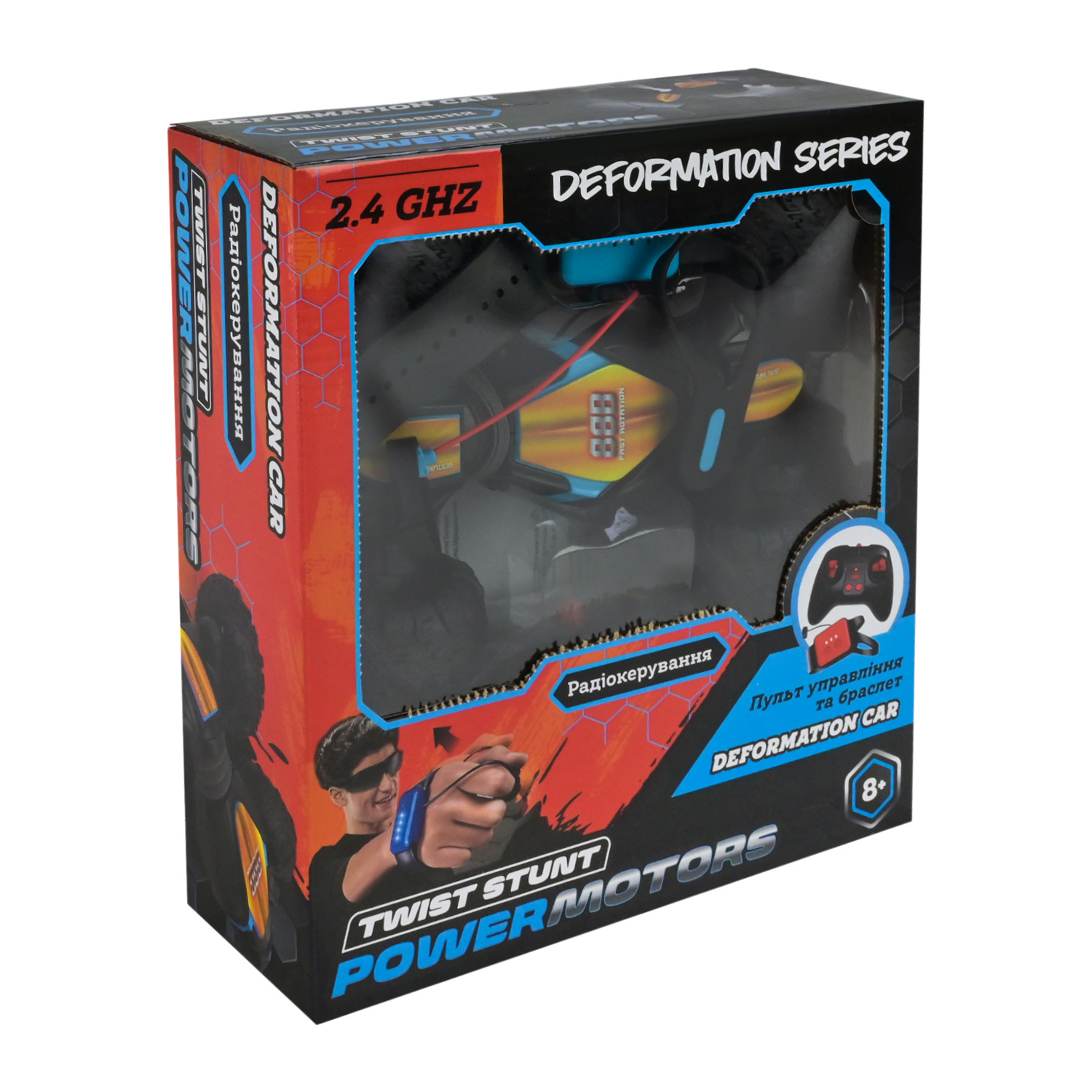 • Машинка має потужний двигун, дуже швидка та легко маневрує на поворотах, може відштовхуватись від перешкод та перевертатись, виконуючи трюки з видовищними обертами на 360°. Може їздити у всі сторони та їхати боком.