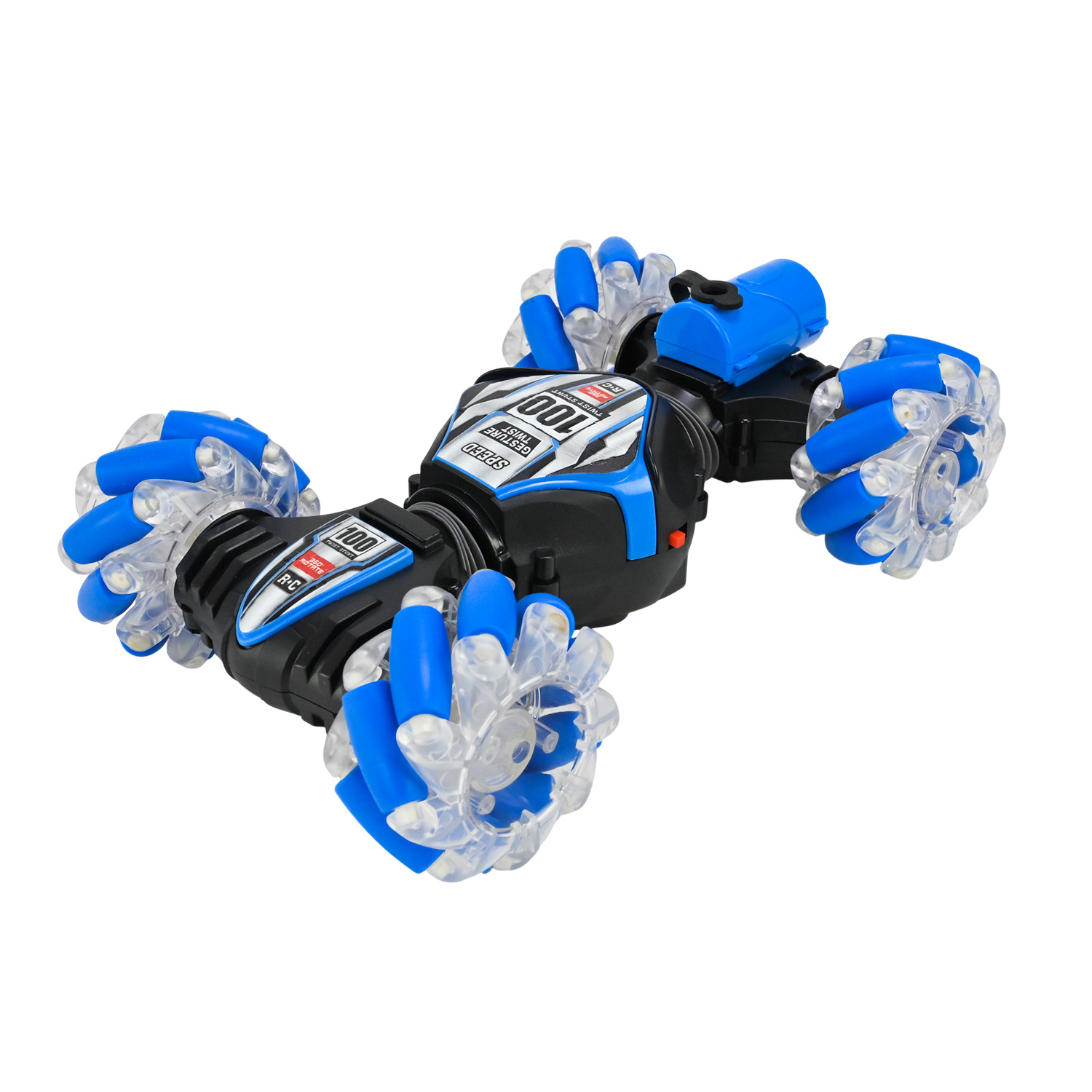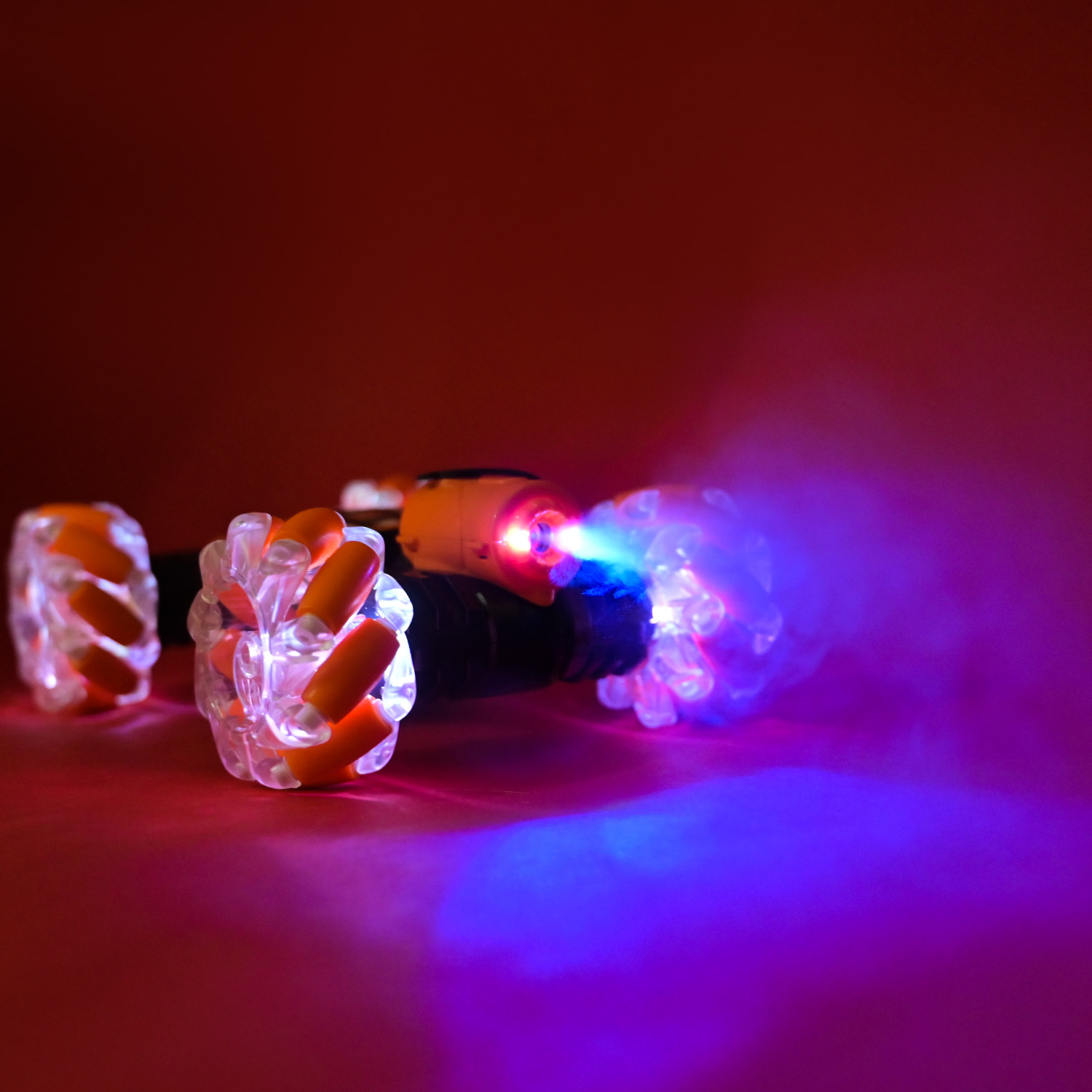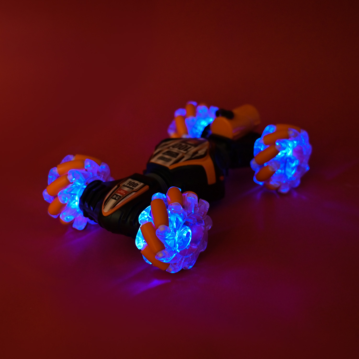• Яскрава підсвітка на колесах робить кожну поїздку ще більш захоплюючою та видовищною, перетворюючи гру на справжнє шоу у темряві. Підсвітку можна вимикати, або обирати тільки один колір, завдяки окремим кнопкам на пульті керування.