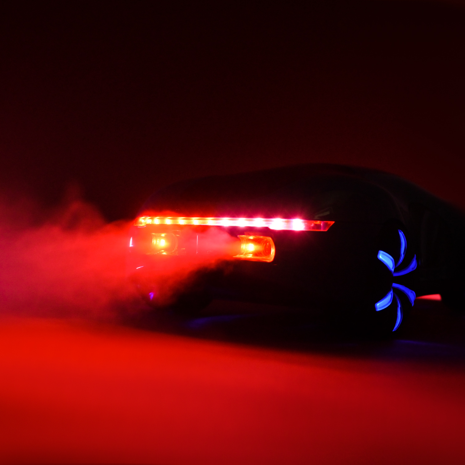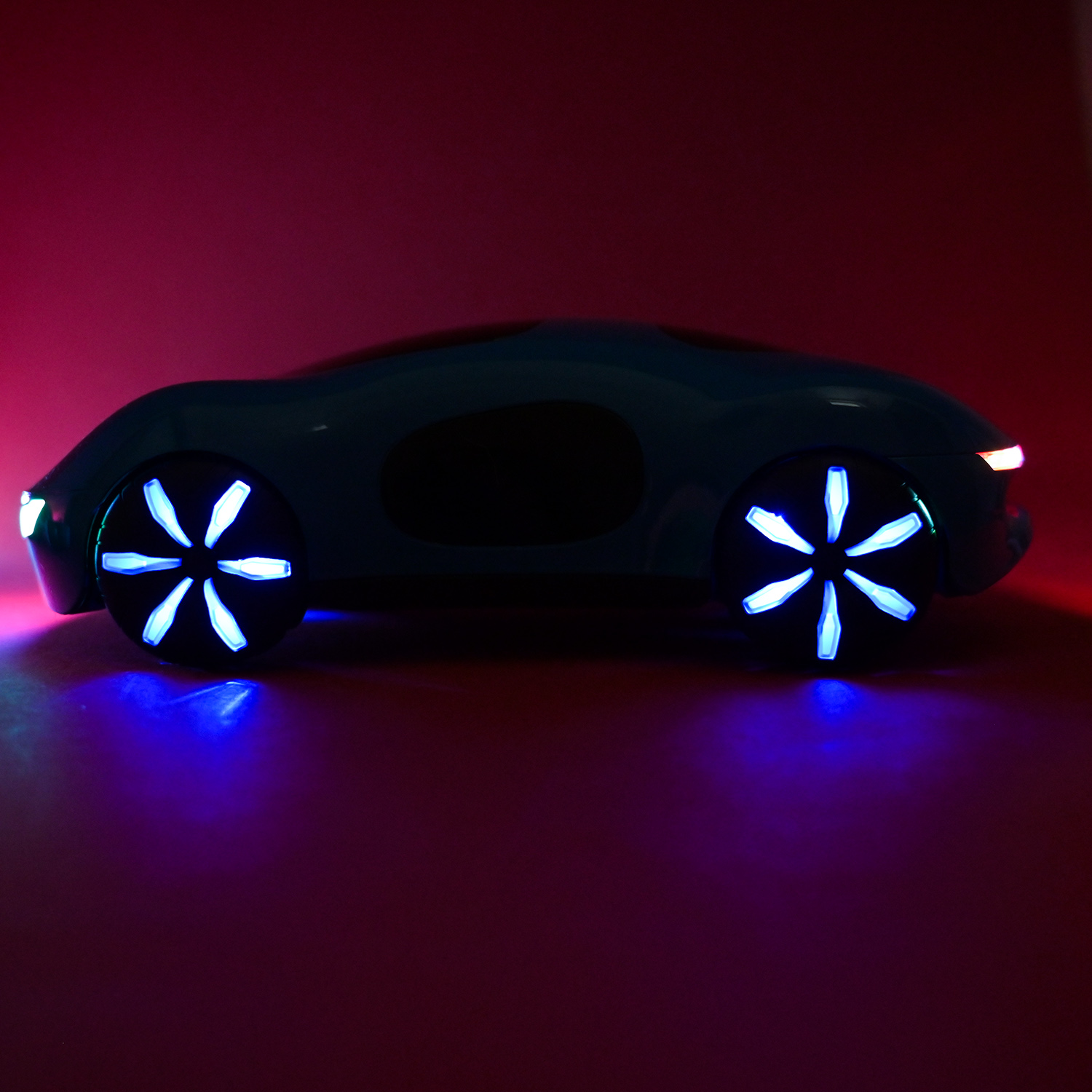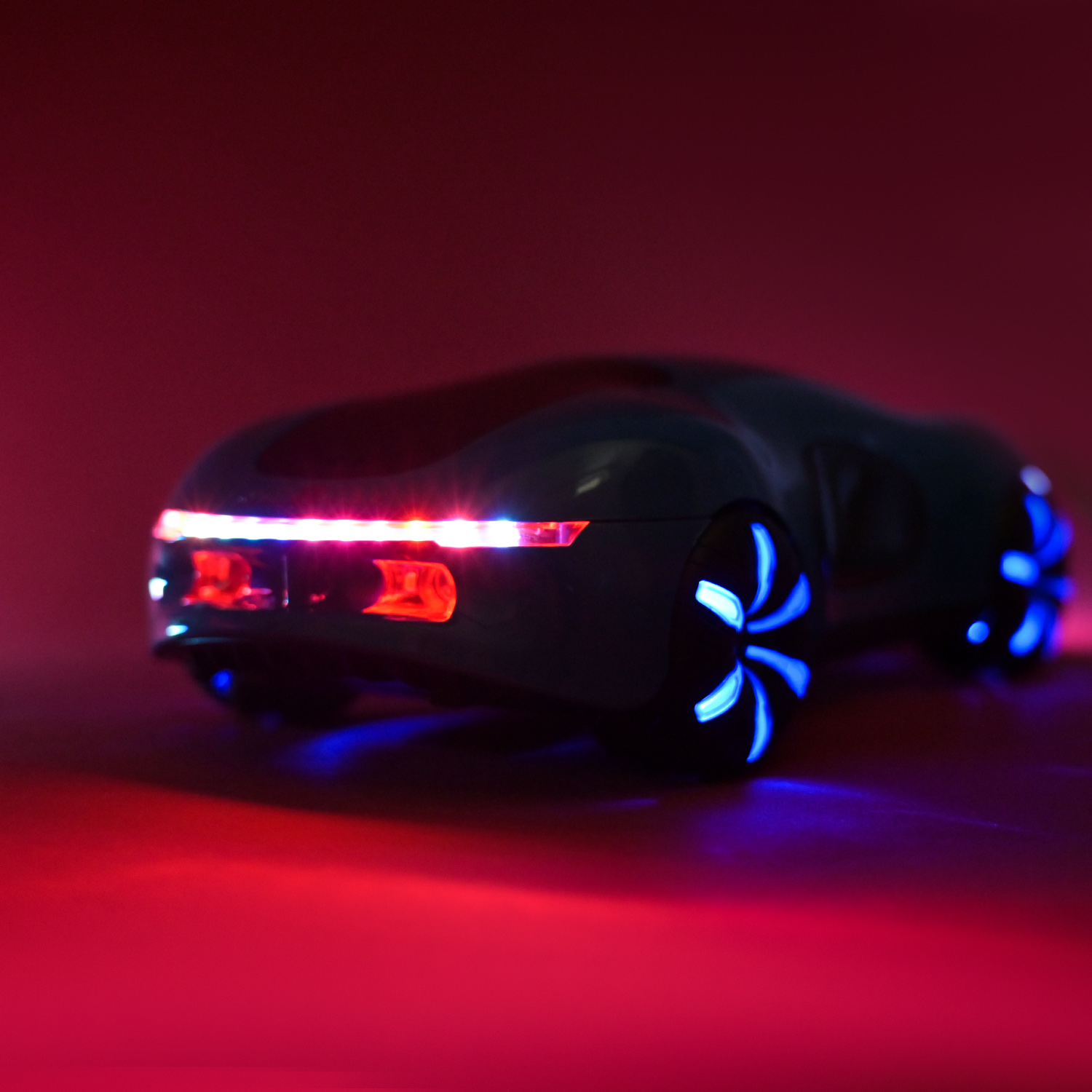 • Машинка поєднує у собі різнокольорову підсвітку, підсвічування фар та колес, які перетворюють кожну гру на справжнє шоу у темряві.
