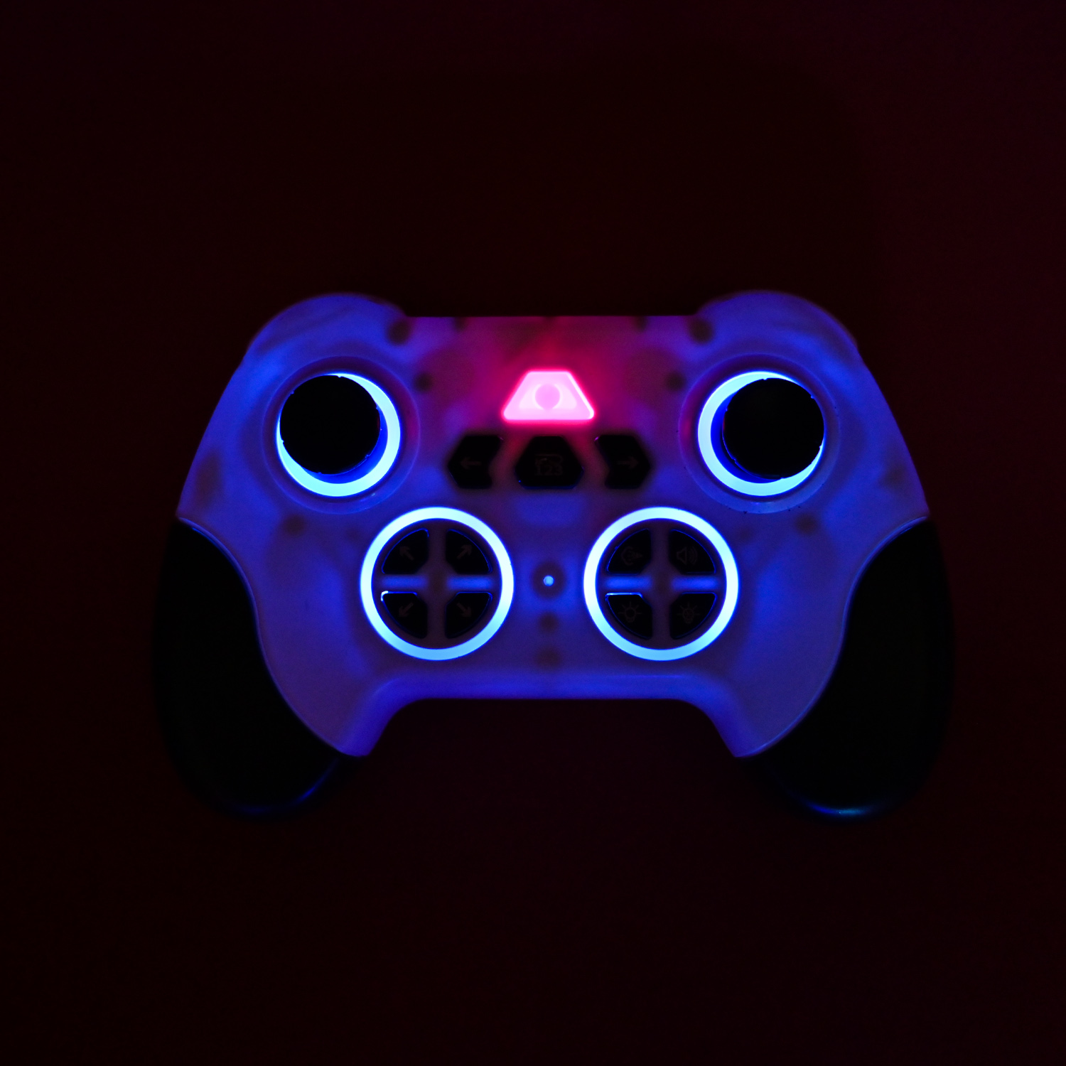 • Радіокерований пульт теж має різнокольорову підсвітку, що додає особливої атмосфери гри у темряві.