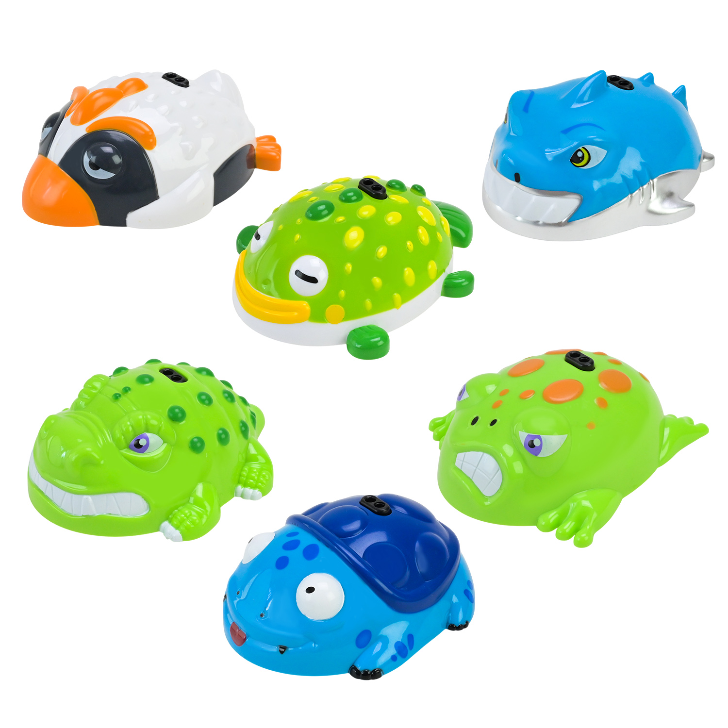 • 6 різних видів милих тваринок-машинок у веселих яскравих кольорах.