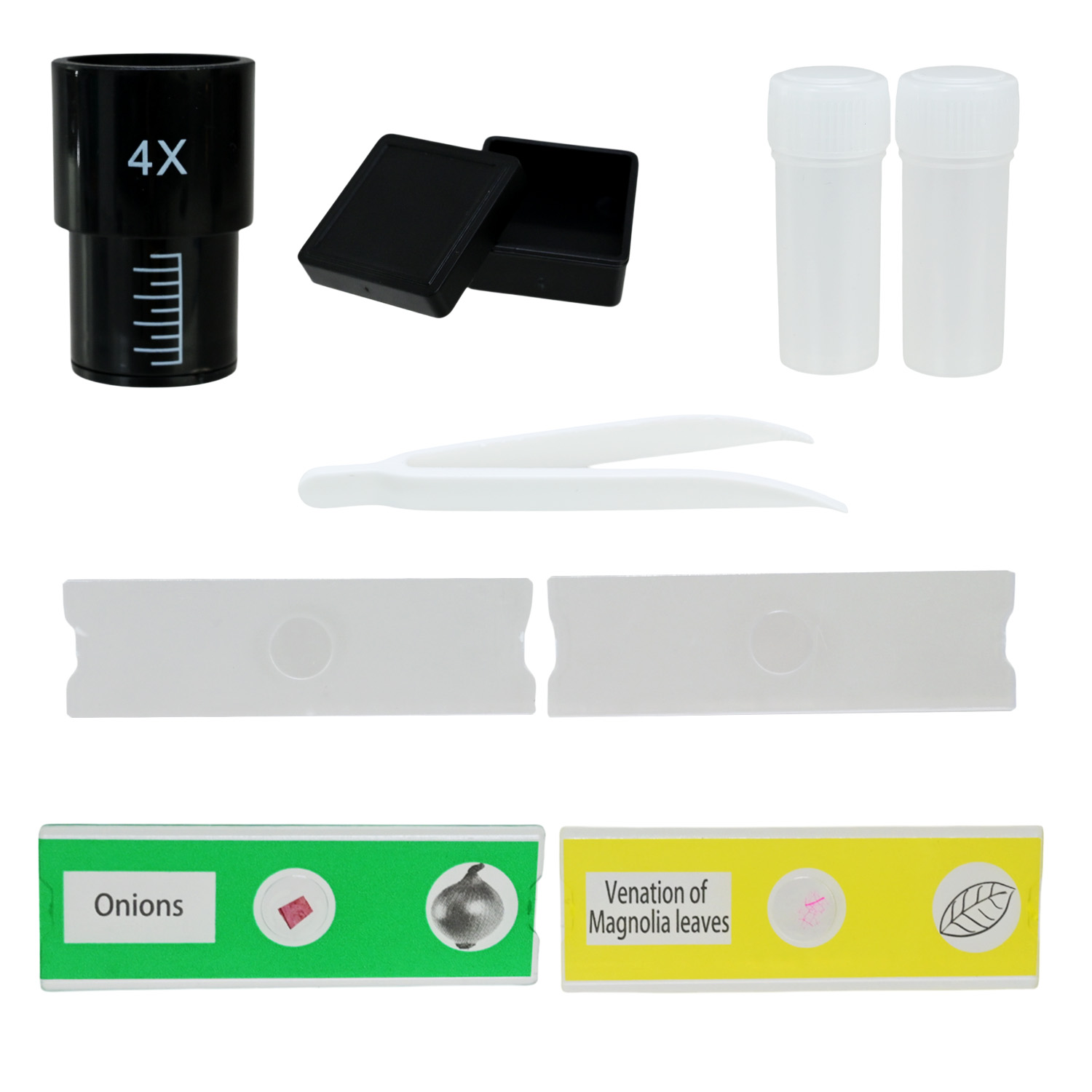 • освітлювальний елемент в мікроскопі та збільшувальна лінза допоможуть краще спостерігати за дослідженнями.