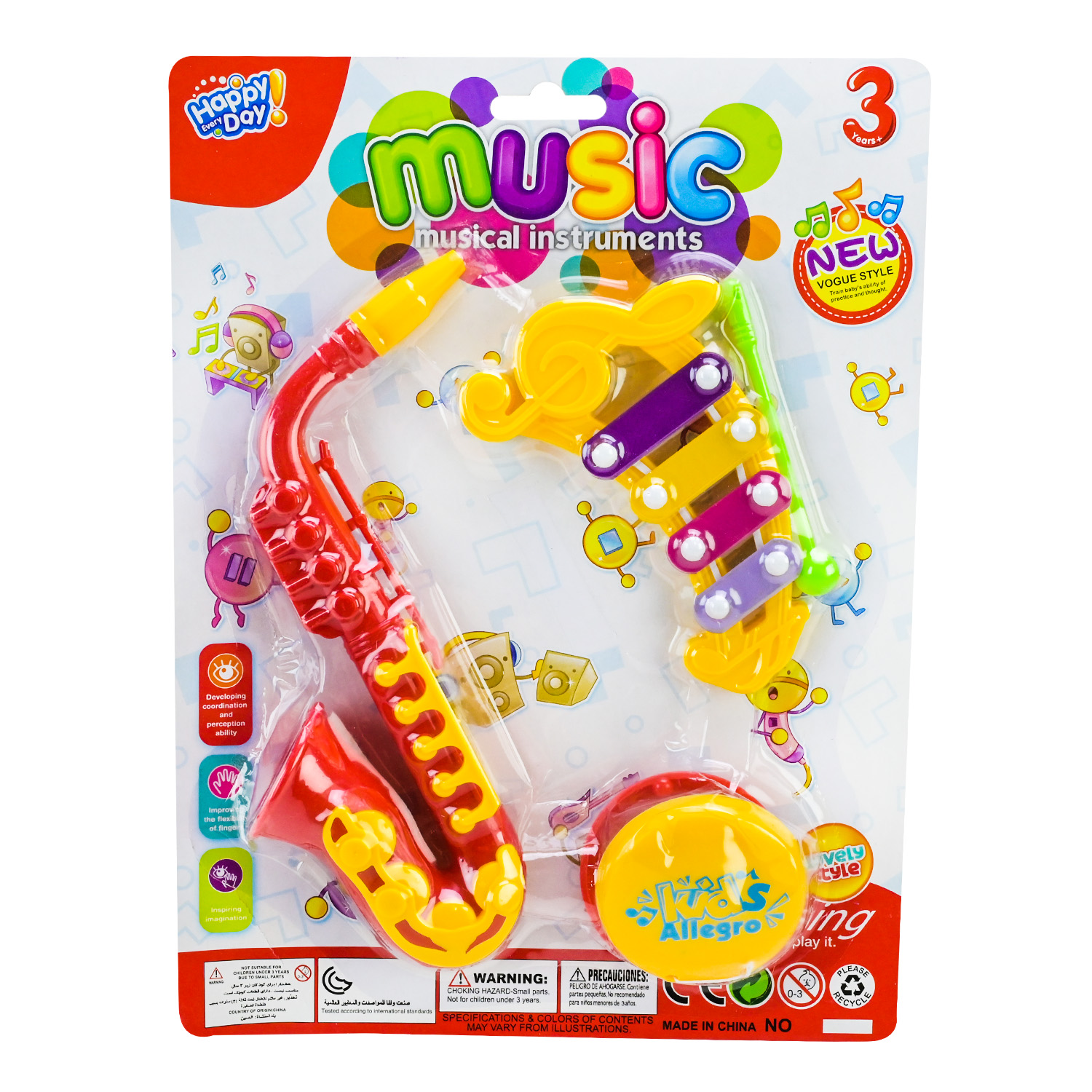 Комплектація: іграшкові музичні інструменти – саксофон, ксилофон, маракас.