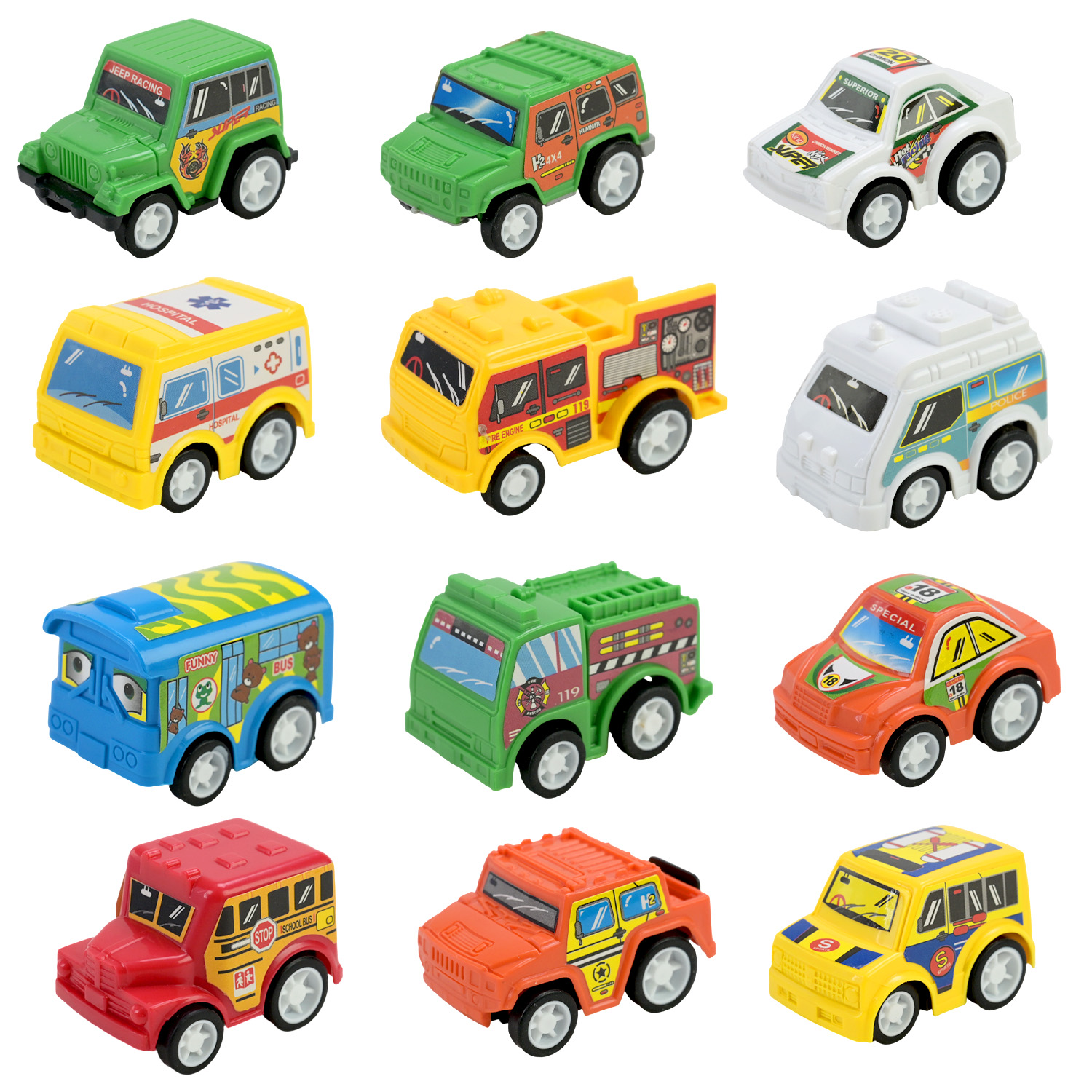 • У наборі представлено 12 різних типів транспорту, для більш цікавої гри.