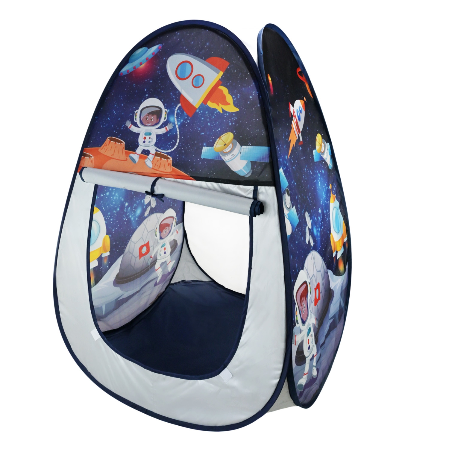 Іграшковий намет у космічному стилі: відкрий свій власний чарівний простір для гри! Цей яскравий намет з гарним принтом створений для справжніх дослідників, мрійників і маленьких мандрівників. Ідеальне місце для ігор, читання чи просто затишного відпочинку.