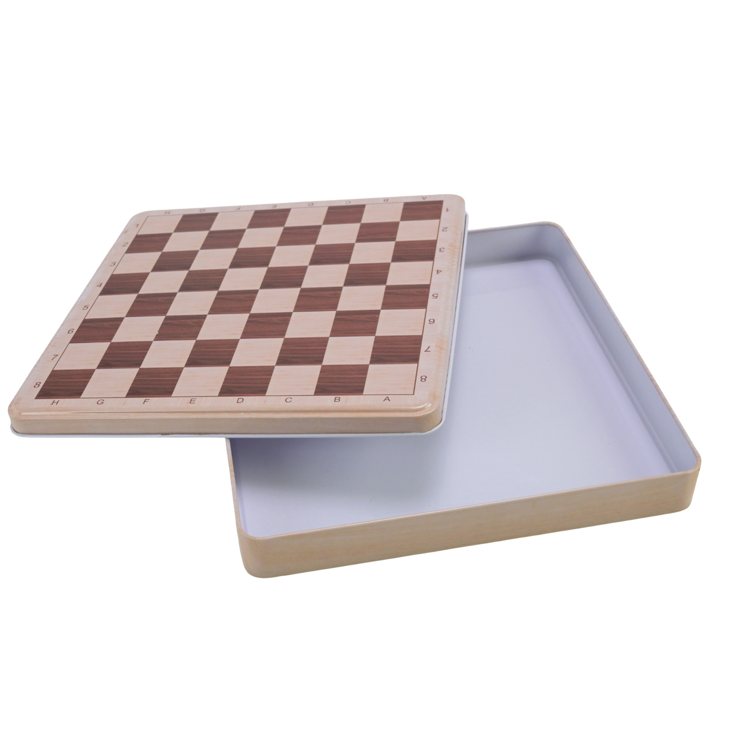 • Металева коробка 2-в-1 — слугує одночасно і місцем зберігання, і ігровим полем з розміткою на кришці.