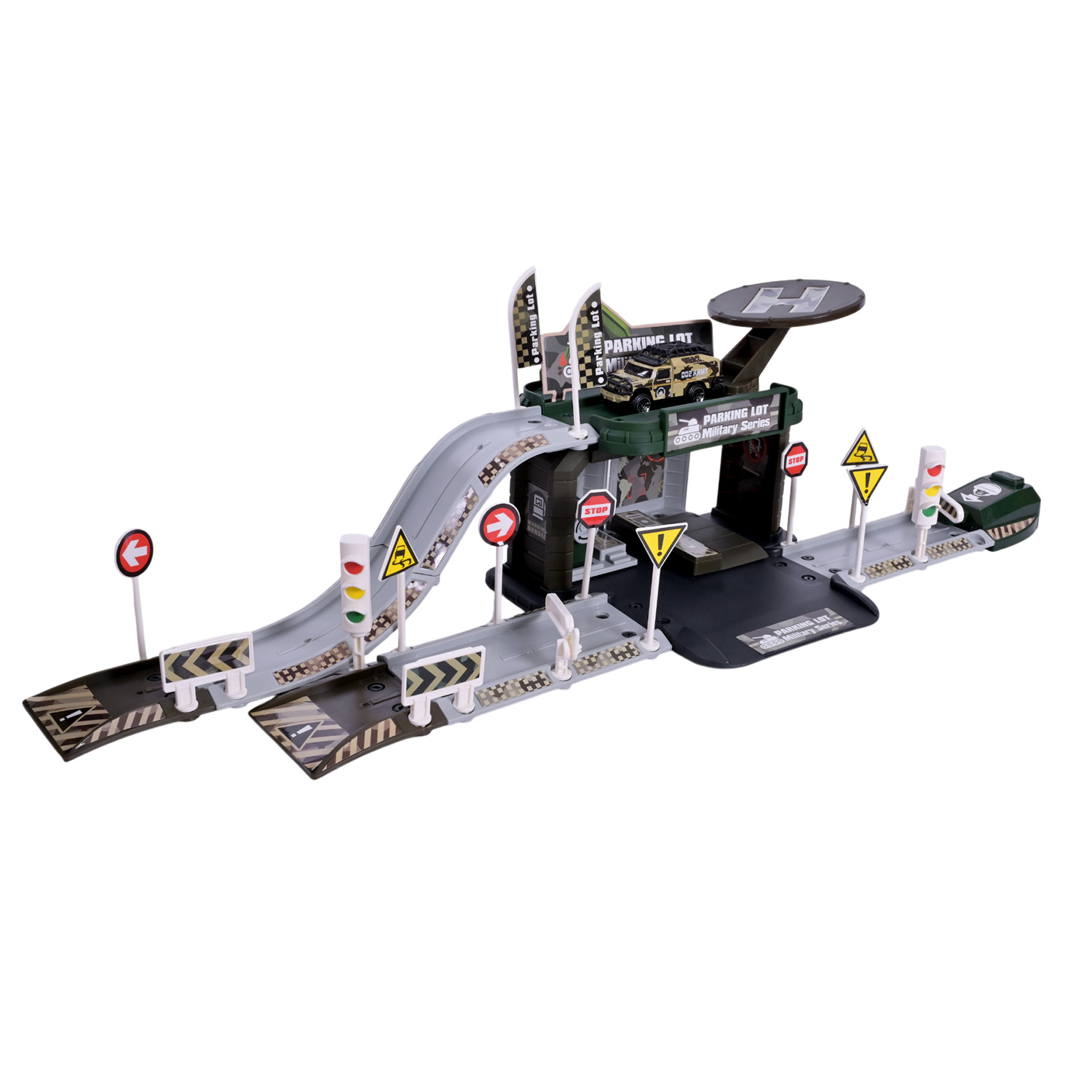 • Двоповерхова конструкція: другий поверх із майданчиком для вертольотів додає нові можливості для гри.
