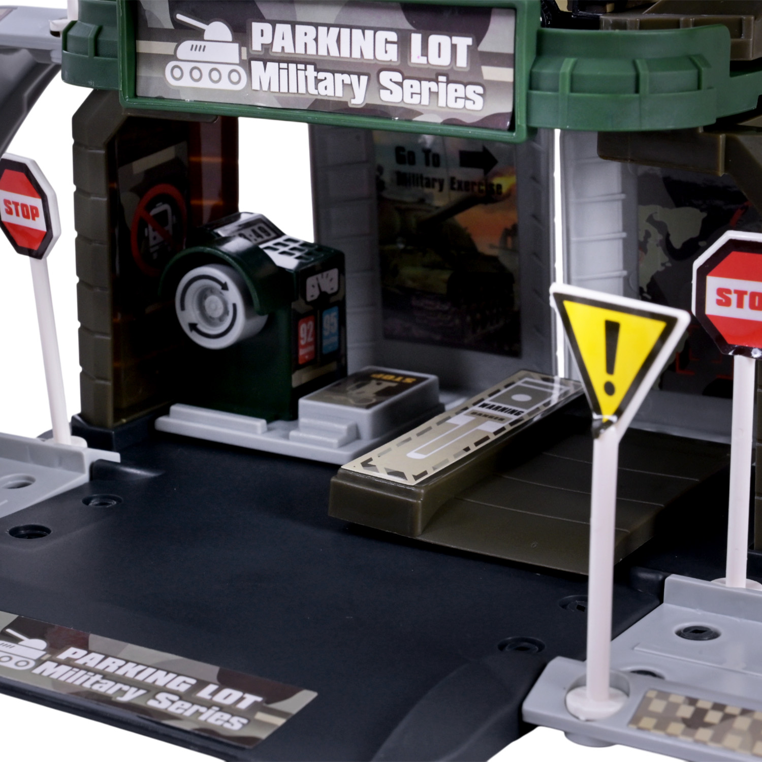 • Запускачка машинок на першому поверсі: натисніть кнопку — і машинка поїде вперед по дорозі.
