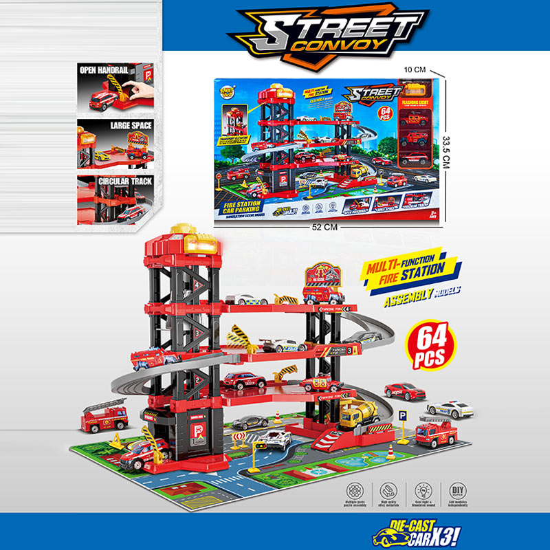 Паркінг арт. MH-625 (16шт) “Пожежна частина”,4-х рівневий,3 машинки,ліфт світло, звук,у короб.52*33,5*10см