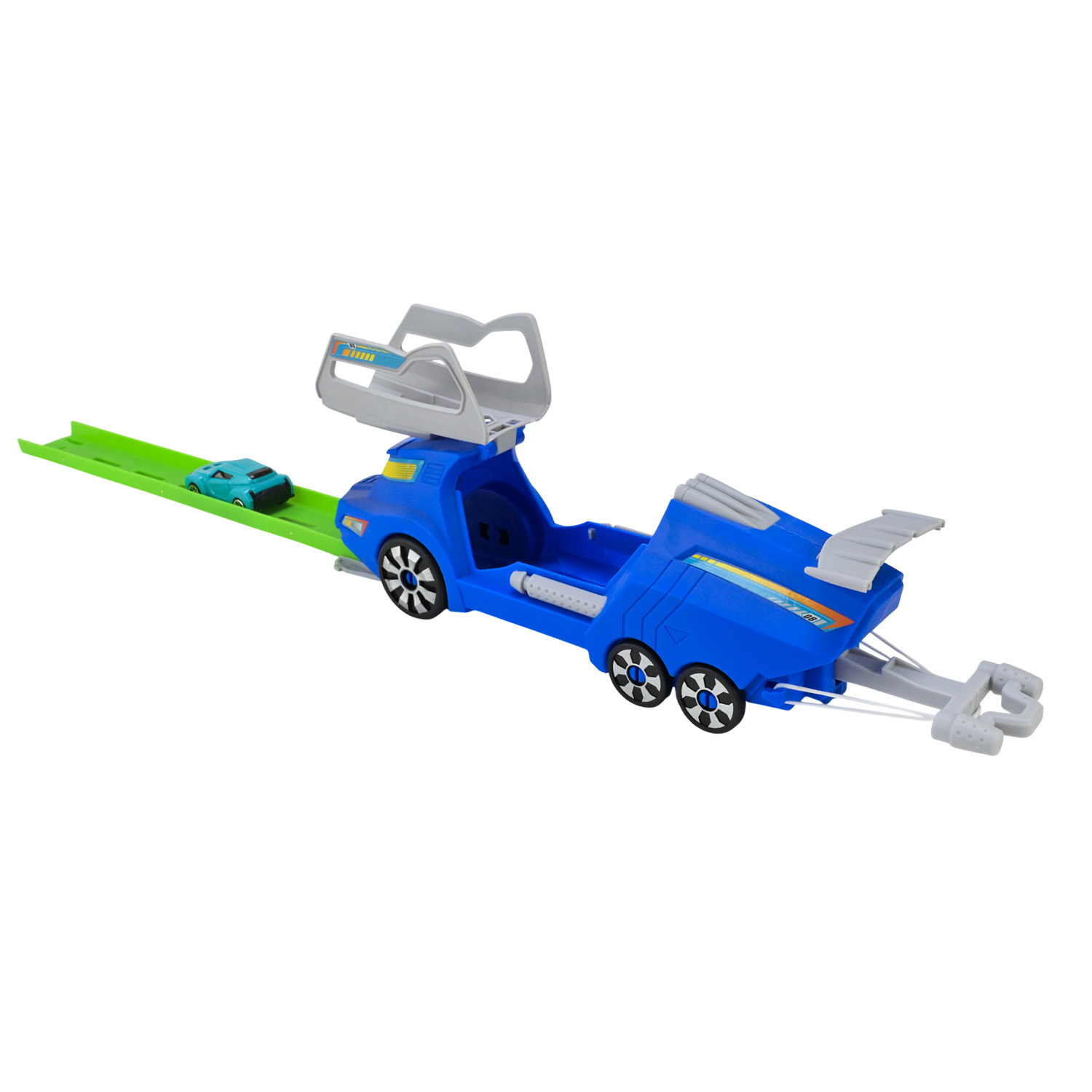 Цей незвичайний ігровий набір трейлер-треку подарує дитині справжні емоції швидкості та пригод! Маленький гонщик зможе відчути себе учасником перегонів, запускаючи машинку просто з великої машинки на трасу.