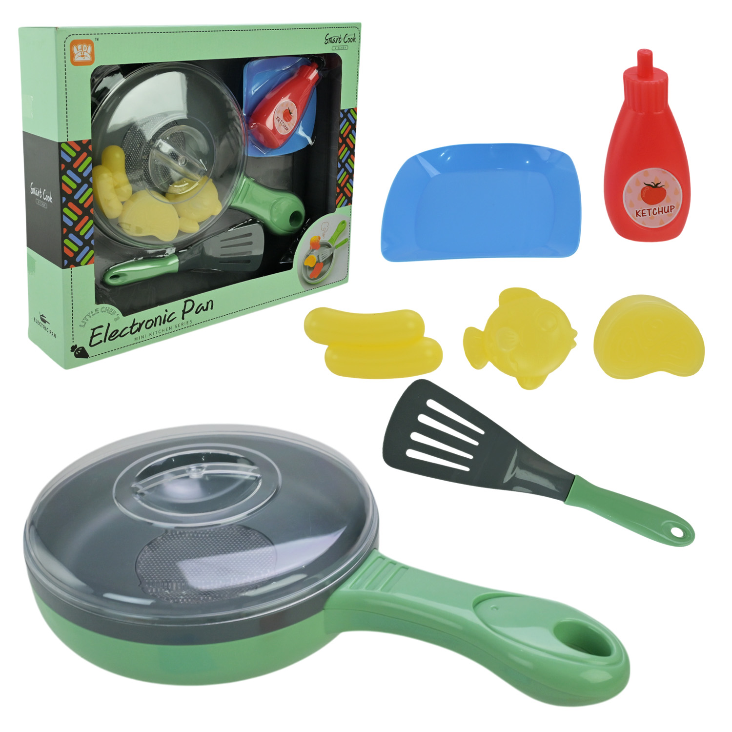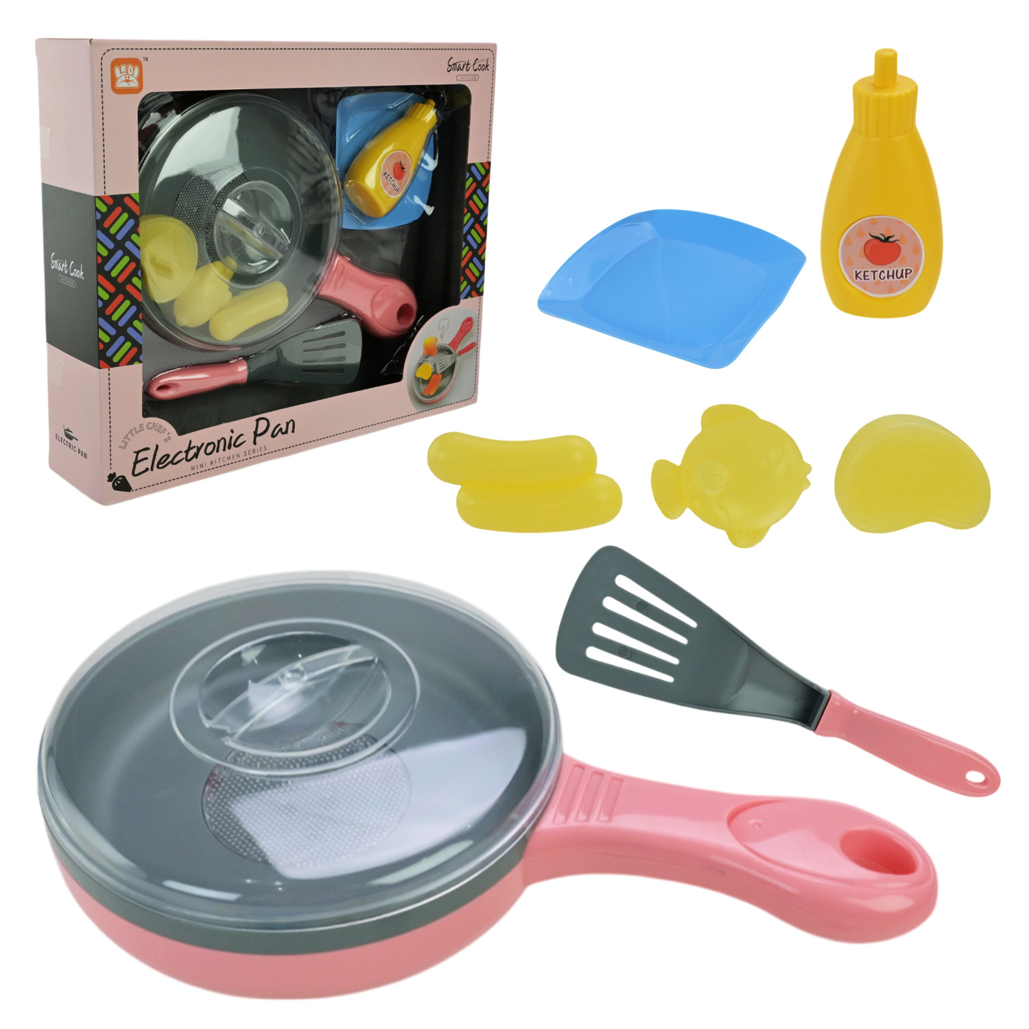 •аксесуари: лопатка, тарілка, 3 види продуктів для приготування, пляшка кетчупу.