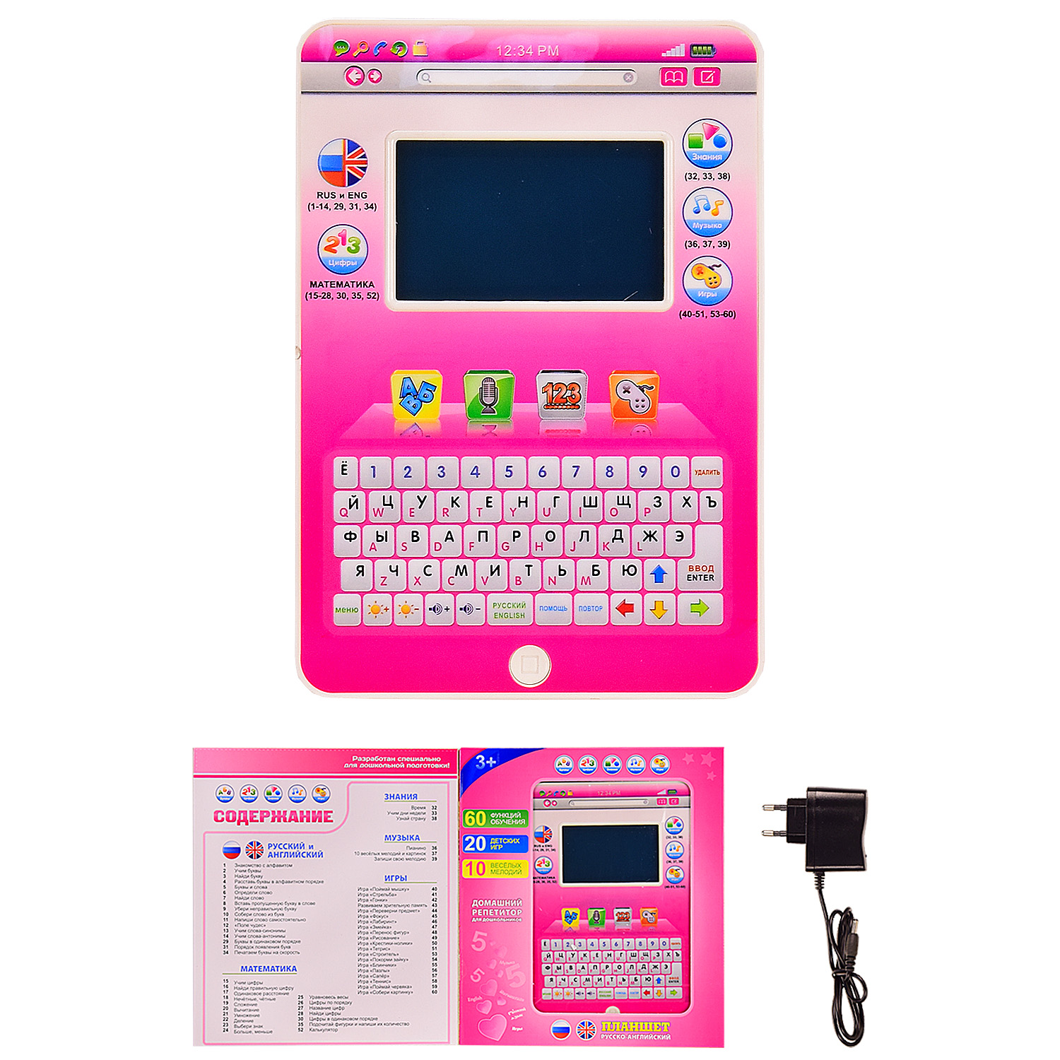 Багатофункціональний навчальний планшет обов’язково сподобається кожній дитині. Він зручний, його легко можна взяти з собою на прогулянку. Такий планшет розвиває моторику рук, логіку, мислення, пам’ять. Також навчає алфавіту, слів, чисел, рахунку. Граючи іграшкою, дитина навчатиметься російської та англійської мови. Планшет допоможе малюкові вивчити букви, правопис, цифри, вивчити основи музики, а також просто відпочити і пограти у веселі ігри.