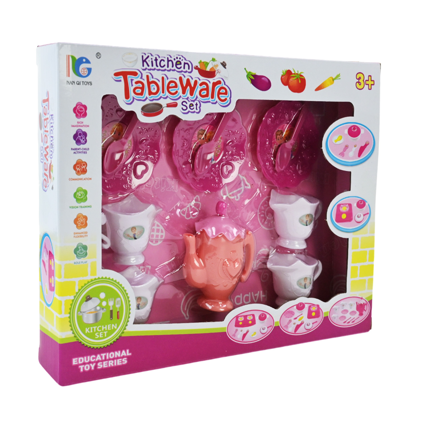 • Ергономічна форма чашок і посуду — легко тримати в маленьких руках.