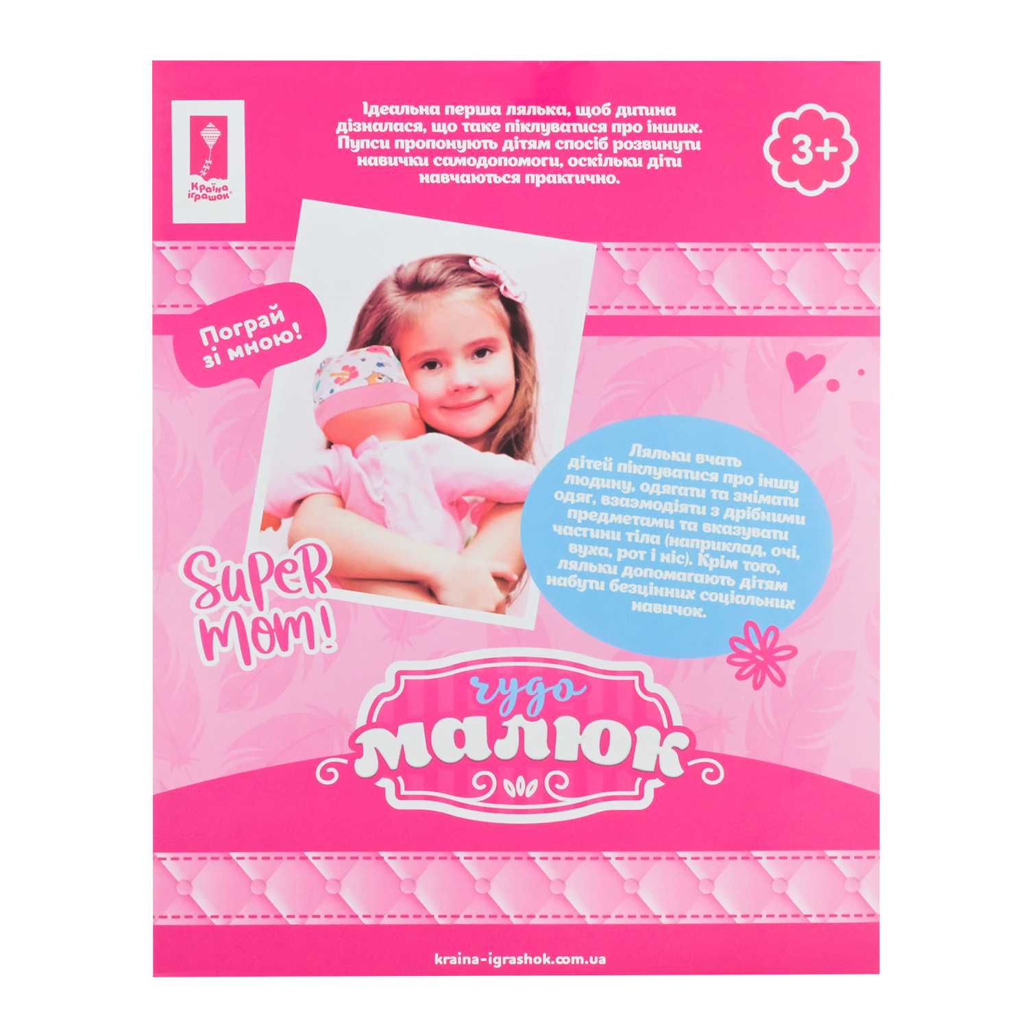 Пупс «Чудо Малюк» від Країни Іграшок – це ідеальна перша лялька, щоб дитина дізналася, що таке піклуватись про інших. Пупси пропонують дітям спосіб розвинути навички самодопомоги. Крім того ляльки допомагають дітям набути безцінних соціальних навичок. Ця іграшка дозволить цікаво та весело провести час, фантазуючи та вигадуючи сюжетну-рольову гру. Таку іграшку можна брати із собою на прогулянку та дитячий садок.