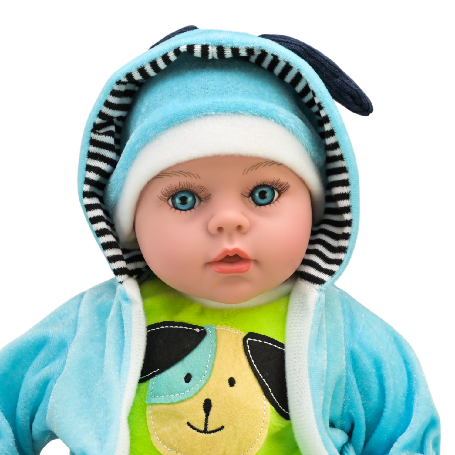 • Скляні очі: лялька має виразні очі, виготовлені зі скла — вони виглядають дуже натурально та надають іграшці особливої чарівності.