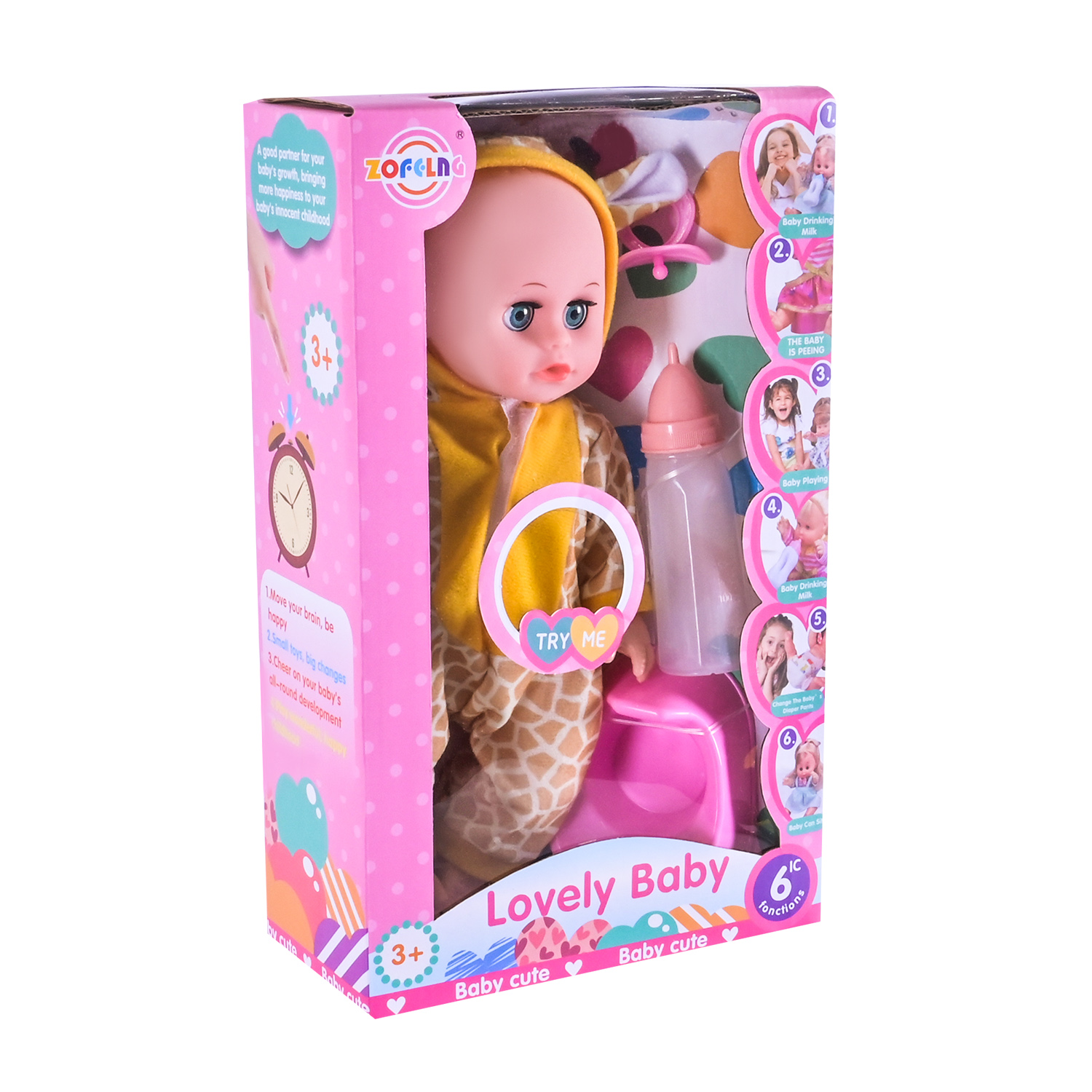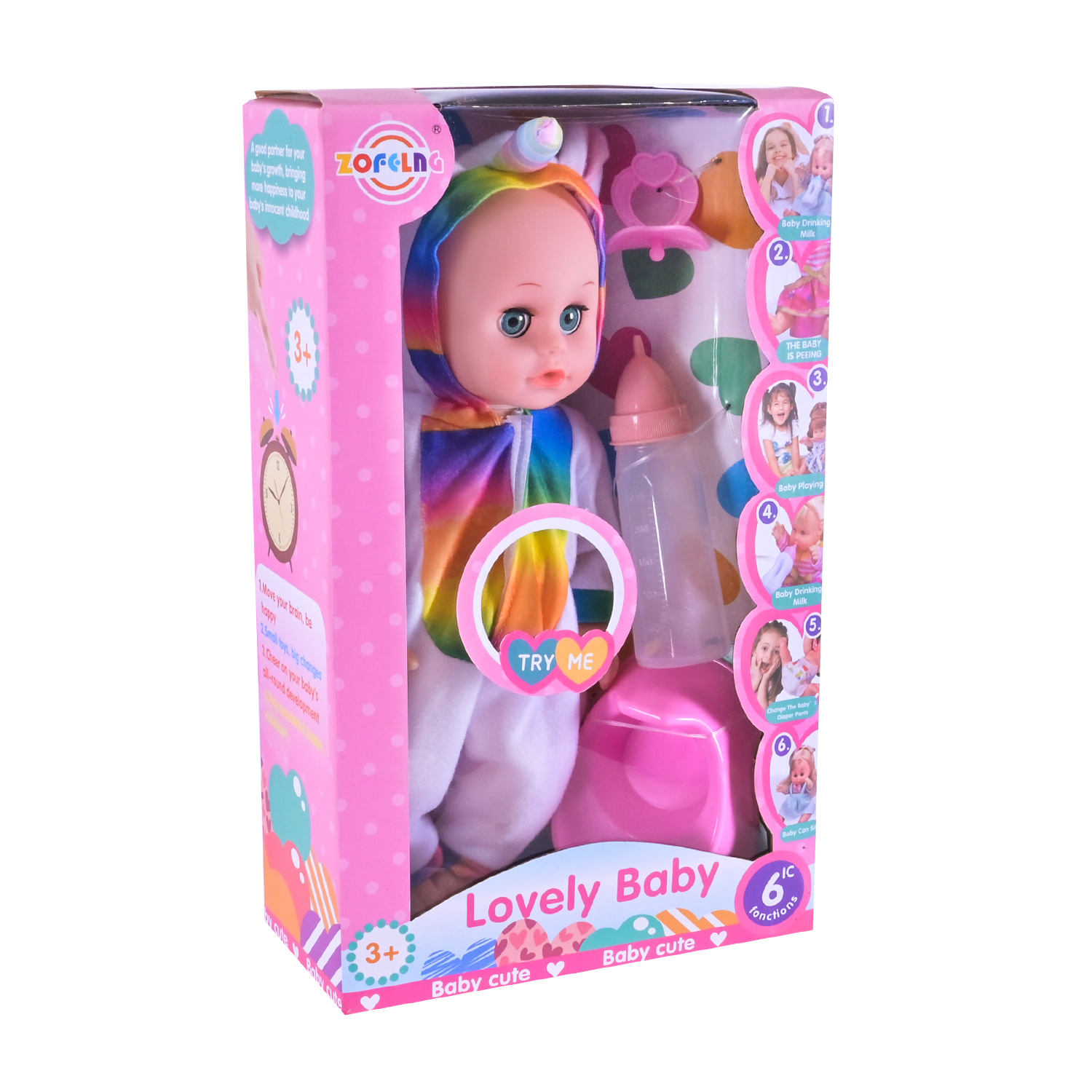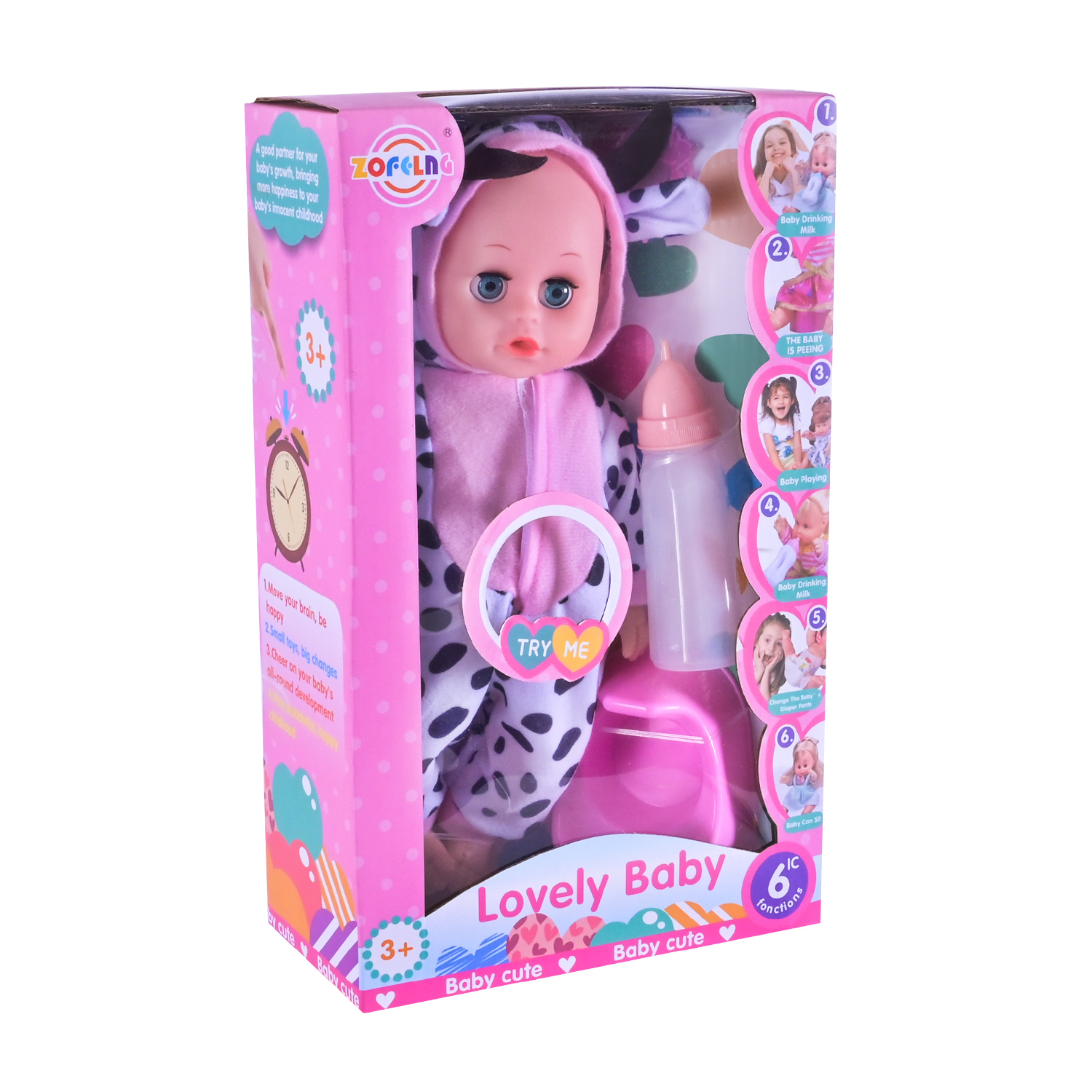 •Яскравий дизайн: пупс доступний у трьох милих варіантах з різними костюмчикам.