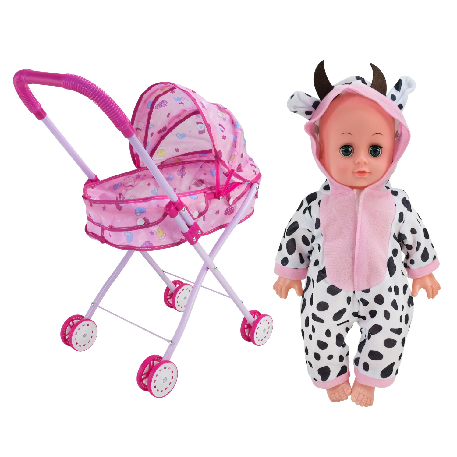 Набір із пупсом та коляскою створює атмосферу турботи й ніжної гри, надихаючи дитину вигадувати власні історії та з радістю доглядати за маленьким другом.