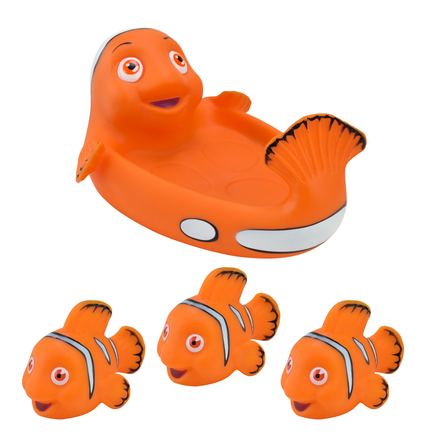 Зануртеся у світ фантазії разом з рибкою Немо! Ця мила іграшка-пискавка створена спеціально для найменших дослідників. Велика рибка виступає як човник, а троє маленьких рибок мандрують на її спині, викликаючи усмішку з першого погляду.