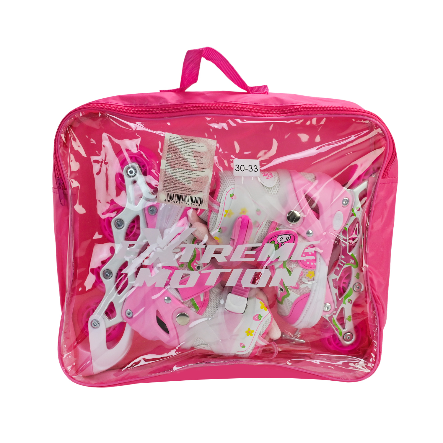 • Рожево-білий дизайн з яскравим принтом у вигляді полуниці, квітів та зайчиків роблять ролики привабливими та оригінальними.