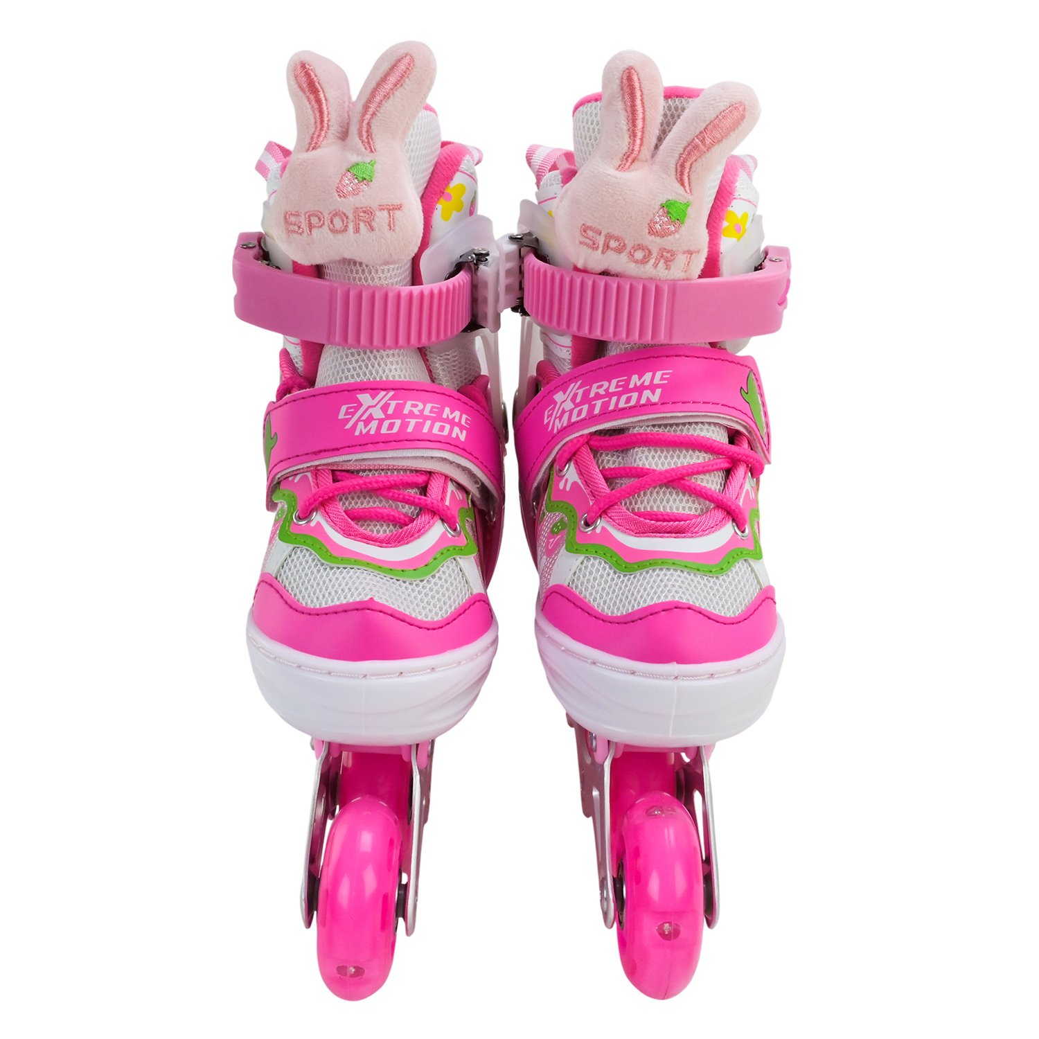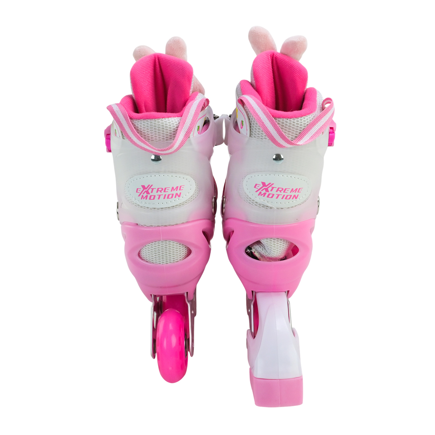 Дитячі роликові ковзани Extreme Motion у ніжному рожево-білому дизайні — це стильний і практичний вибір для маленьких модниць. Гармонійне поєднання кольорів та веселий принт створюють особливий настрій під час кожної прогулянки. Модель поєднує стиль, комфорт та безпеку. Це чудовий вибір для перших кроків у світі роликового спорту.