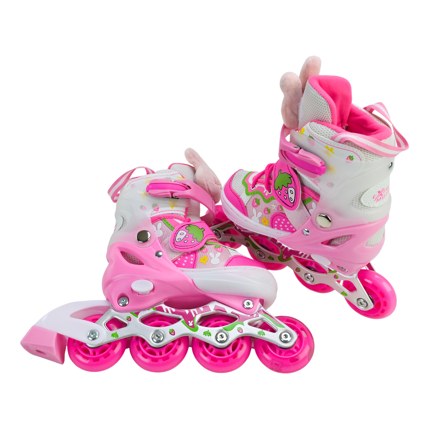 • Рожево-білий дизайн з яскравим принтом у вигляді полуниці, квітів та зайчиків роблять ролики привабливими та оригінальними.
