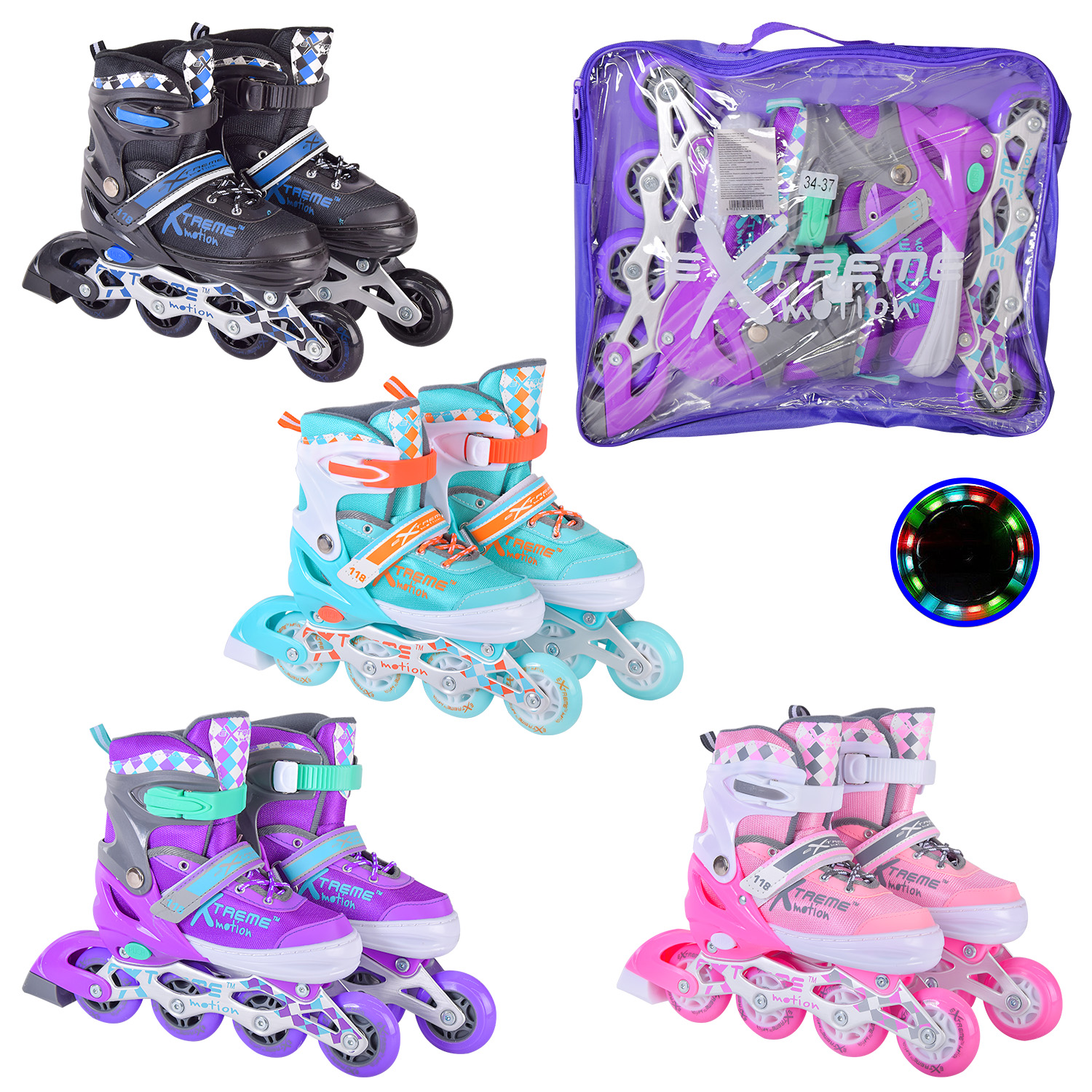 Ролики арт. R2053 (6 шт) L (38-41) металл.рама, колеса pu 1 світло, 4 кольори, сумці