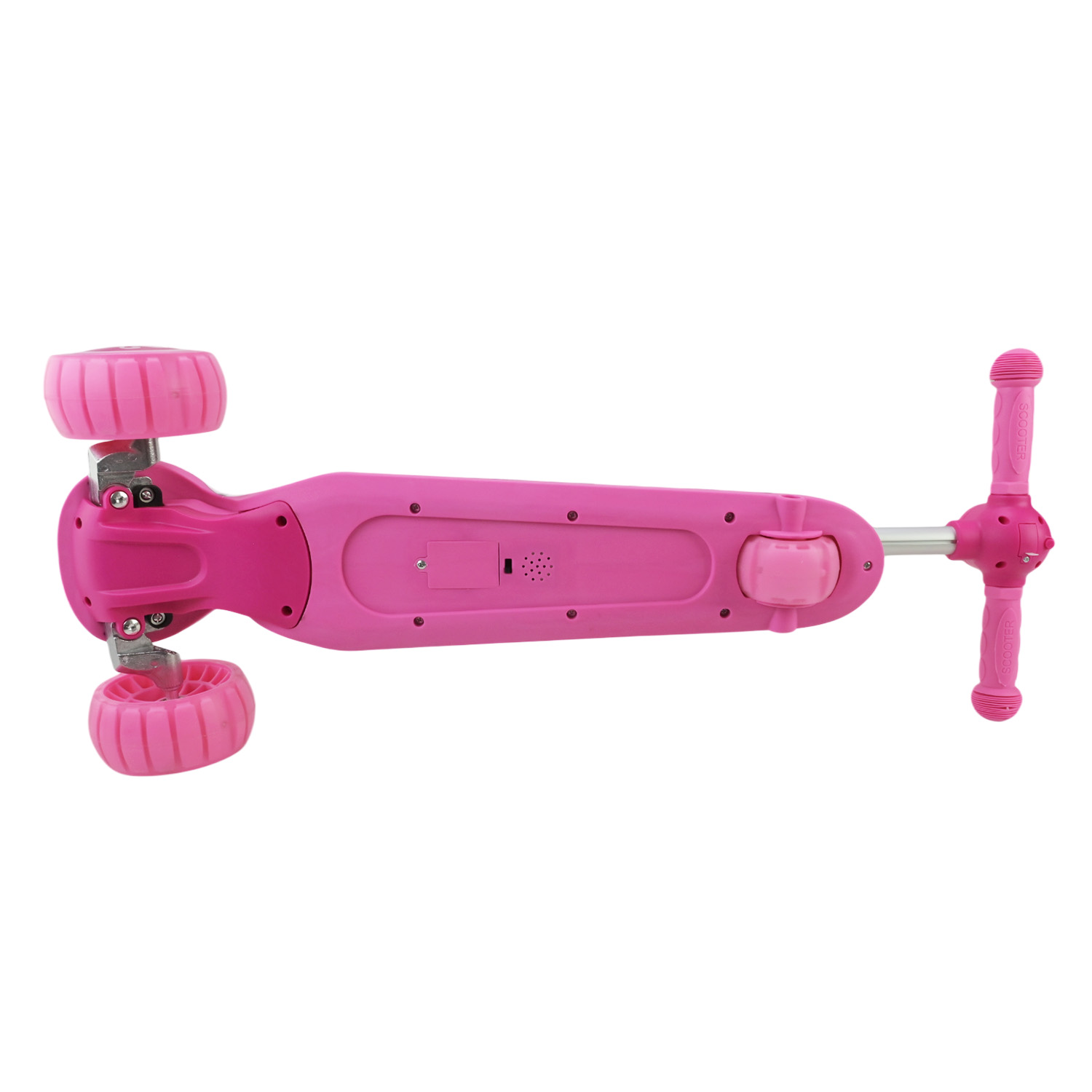 • Світловий та звуковий ефект: корпус самокату світиться, що робить катання ще цікавішим. Присутній звуковий ефект – звучить приємна мелодія. Є перемикач режимів цих функцій. Працює від 3 батарейок типу ААА (не входять в комплект).