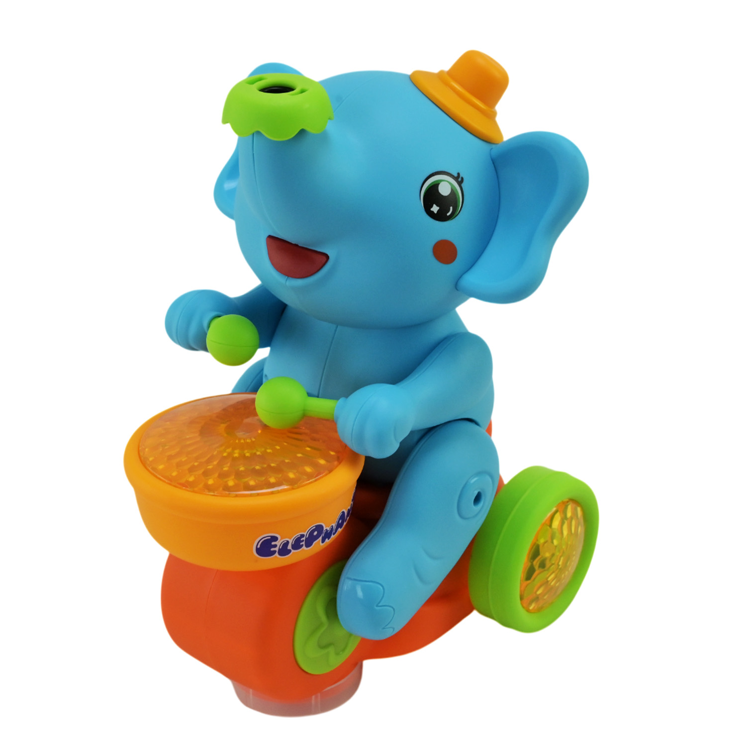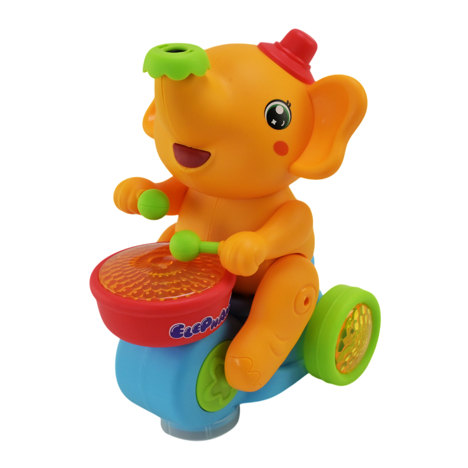 •Рухливий слоник який імітує гру на барабанах.