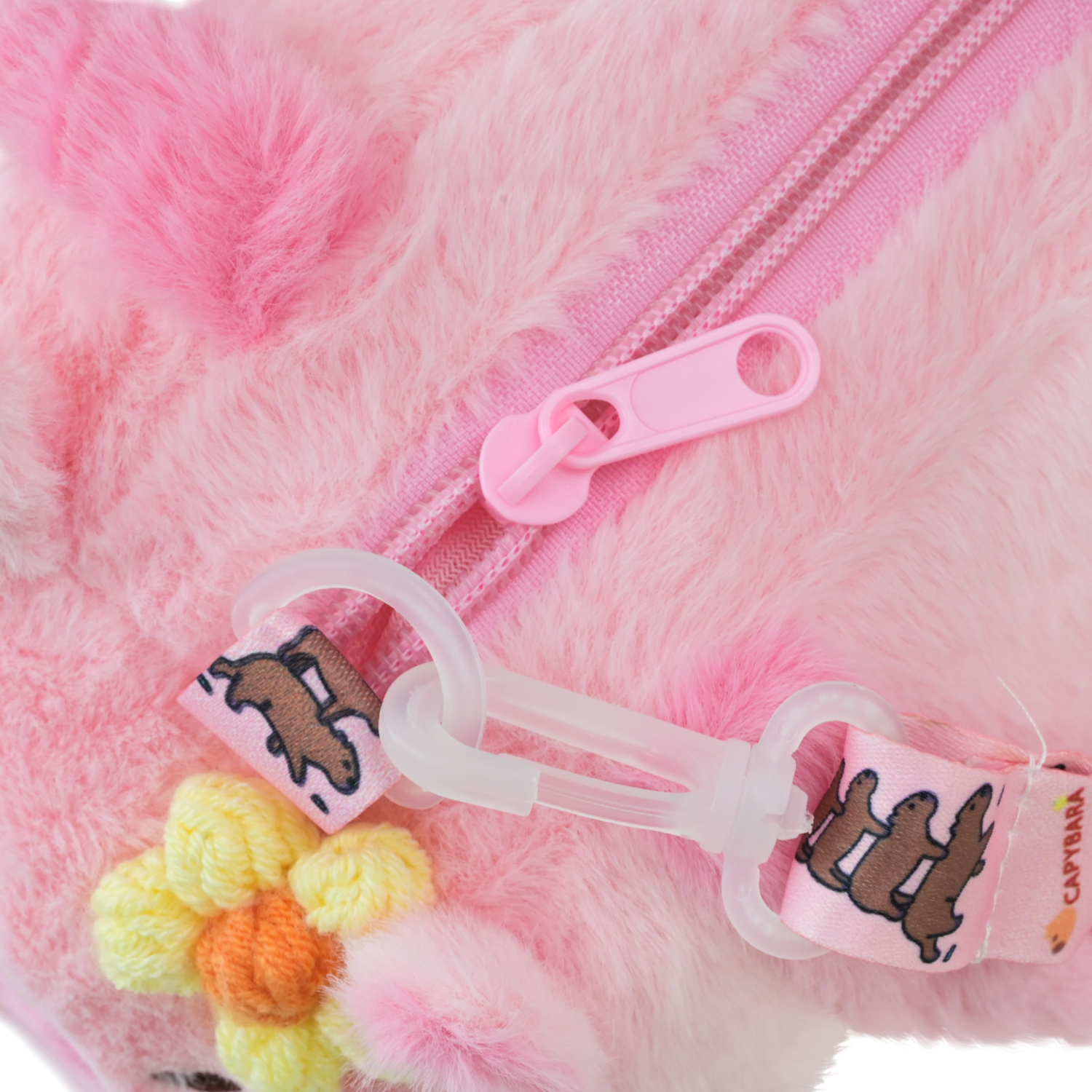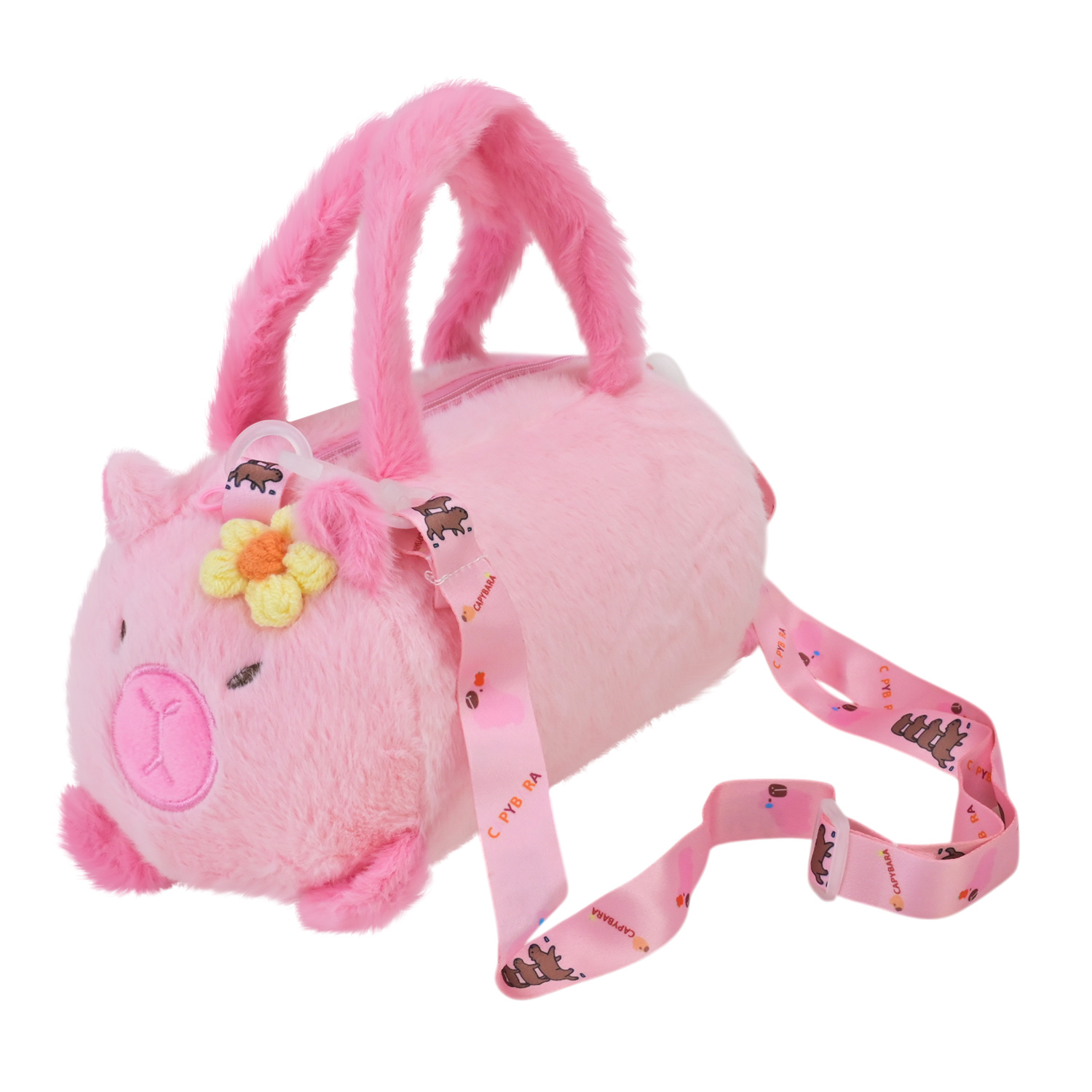 • Оригінальний дизайн м’якої сумочки у вигляді милої капібари рожевого кольору, з квіточкою на голові, що робить її помітною та модною.
