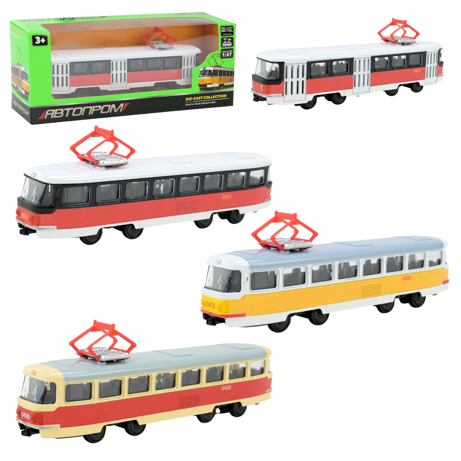 Трамвай мет. АВТОПРОМ арт. 6411ABD (96шт/4) 1:54, 3 кольор., короб. 19,5* 5*8см