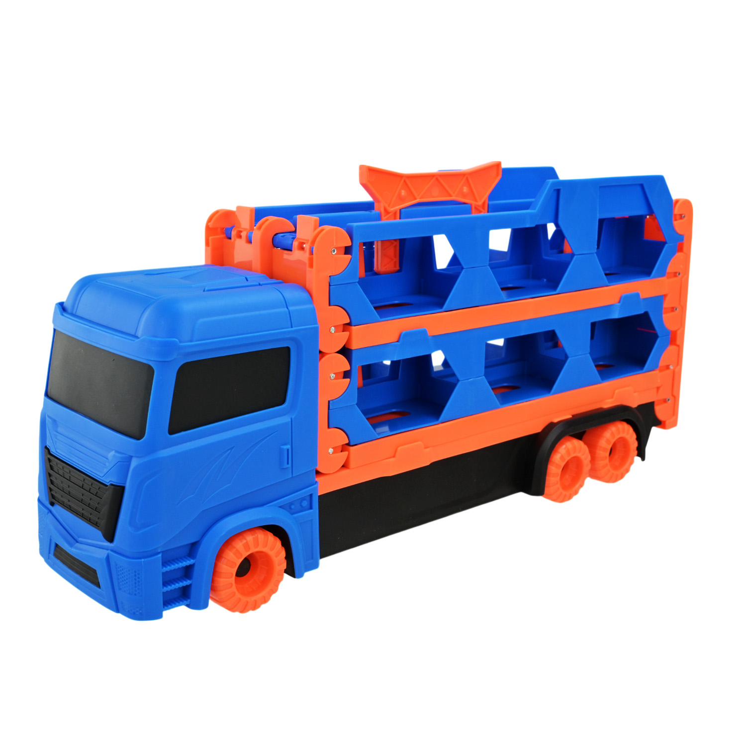 Зустрічайте яскравий іграшковий трейлер з двома інерційними машинками — ідеальний комплект для захопливих ігор! Машинки мають стильний дизайн і легко рухаються по будь-якій поверхні, даруючи дитині безліч веселих моментів.
