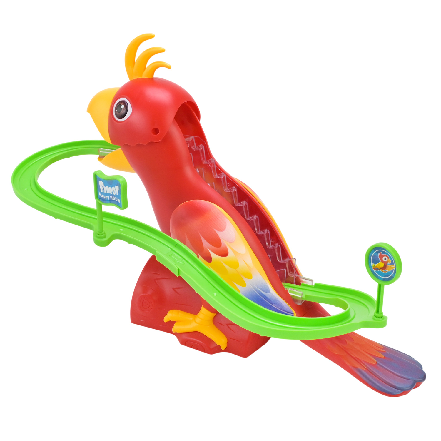 • Оригінальний дизайн – основа треку оформлена у вигляді папуги, з яскравими деталями та рухомими крилами, які підіймаються та опускаються під час гри.
