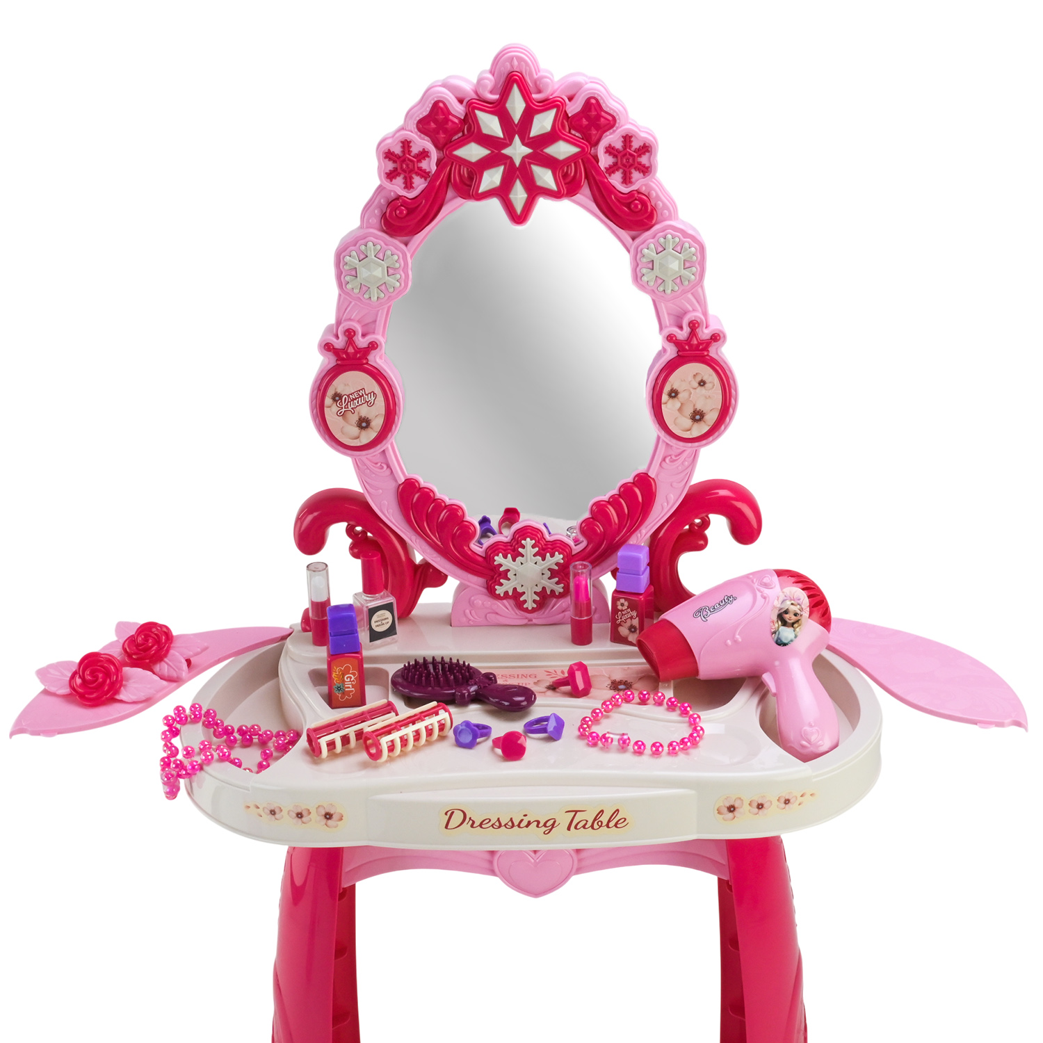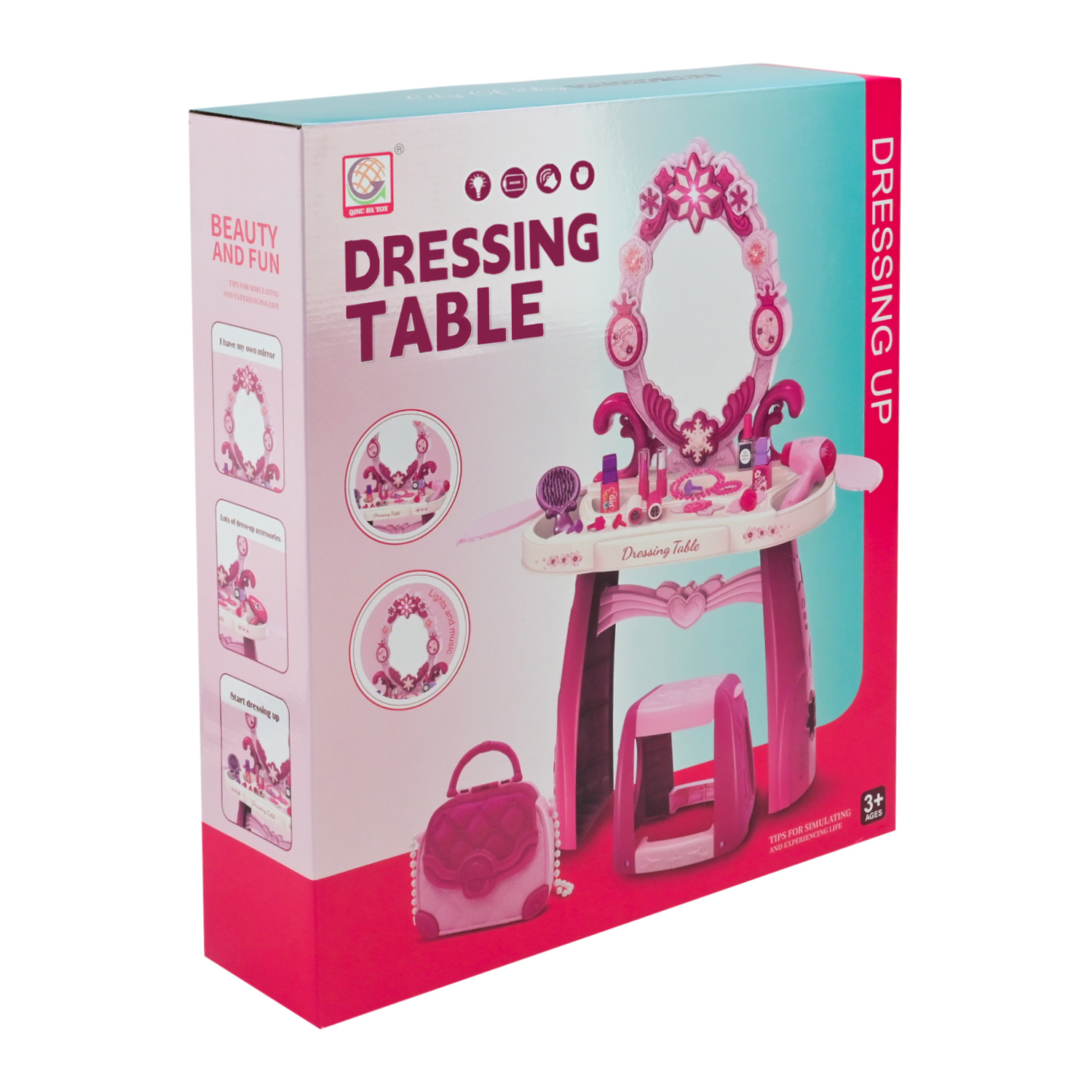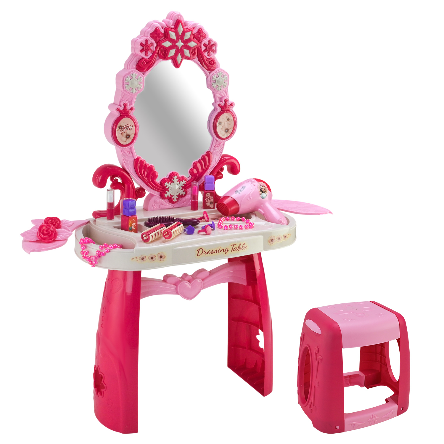Кожна маленька модниця мріє про власне трюмо — місце, де починається краса та фантазія! Це іграшкове трюмо стане справжнім центром гри, адже має все, що потрібно для чарівного перевтілення.