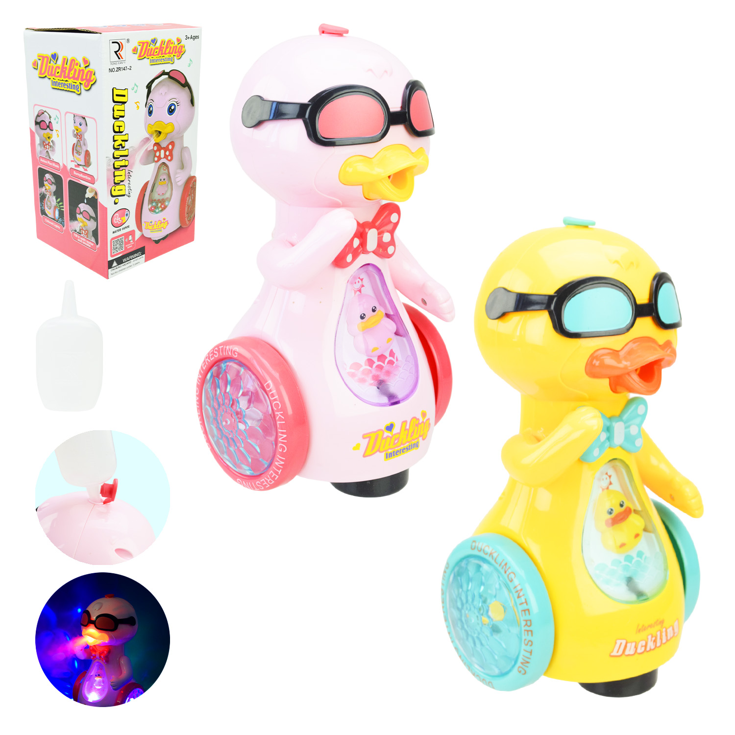 Тварина муз. арт. ZR147/ZR147-2 (72шт/2) качка, батар., 2 види мікс, звук, світ., пар, короб. 12,2*11,8*21,8см