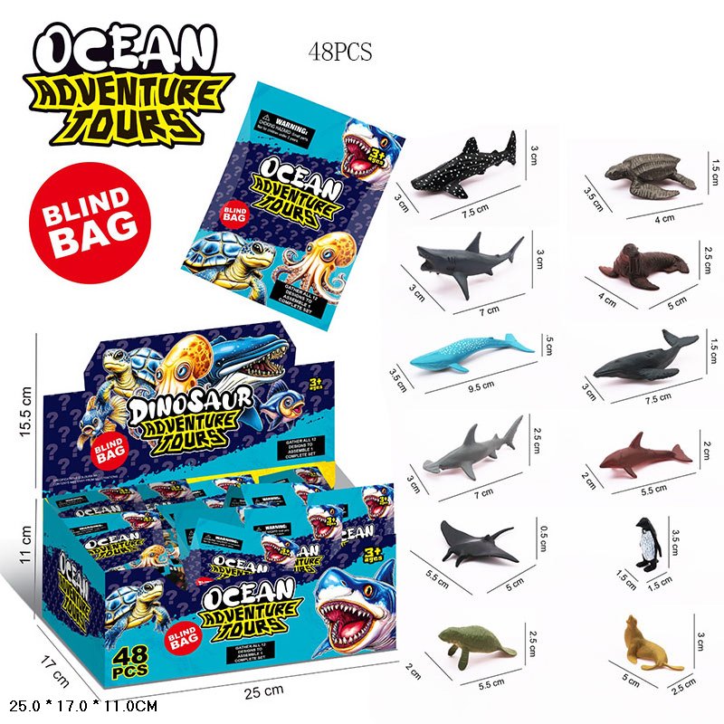 Тварини арт. BY568-957 (1152шт/2) морські, р-р 7*3*2,5см, 24 бокса по 48 шт., пакет 12*9см, бокс 25*17*11см.