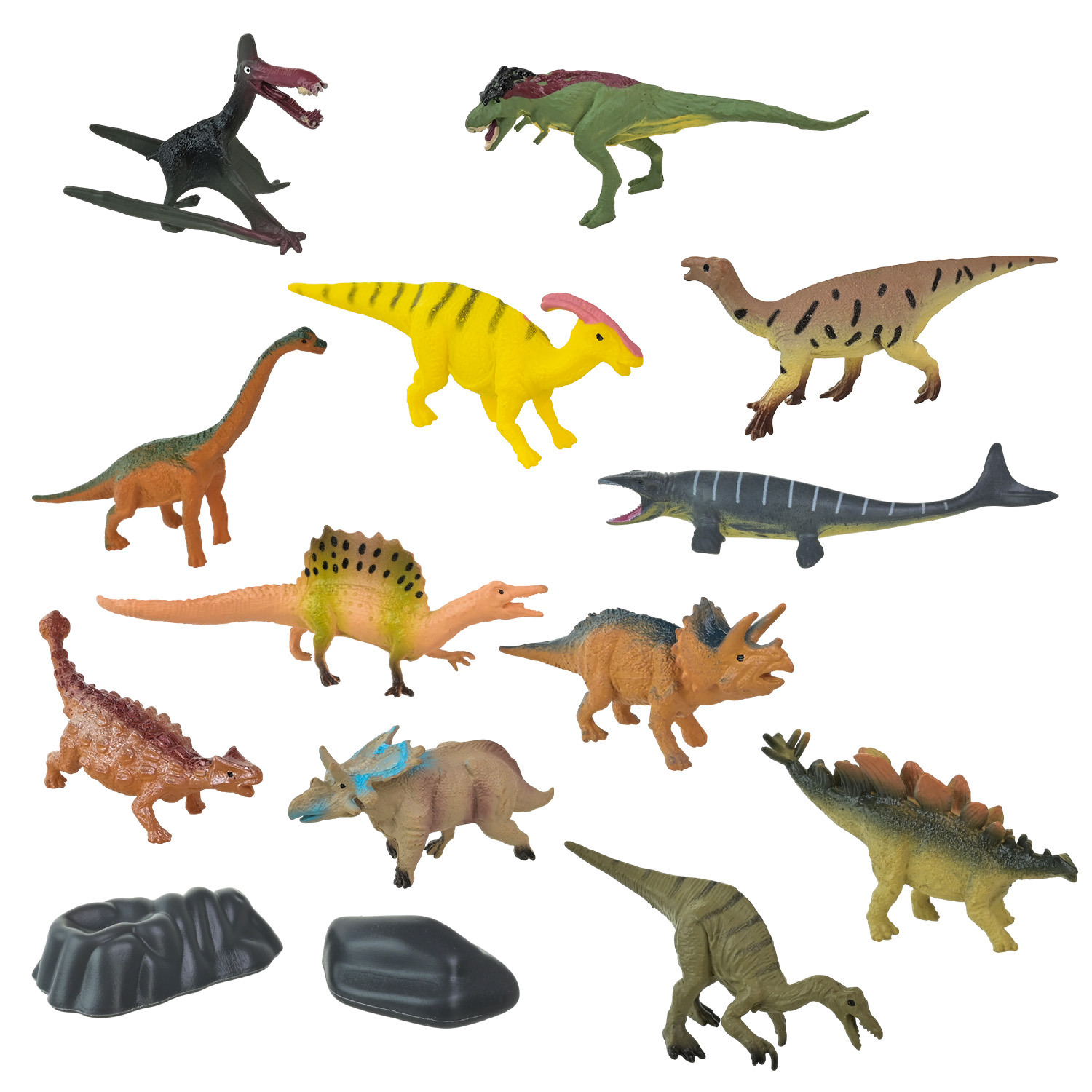 • Різноманітність динозаврів і аксесуарів — набір включає різні види хижих і травоїдних динозаврів, а також природні елементи, що дозволяє дитині розігрувати безліч цікавих сюжетів.