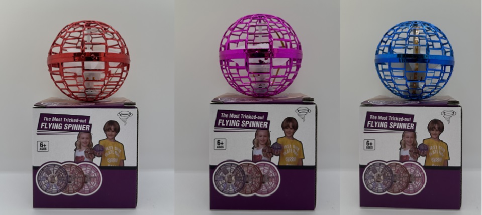 Запускачка р/к арт. 858 (60шт/2) Літаюча куля бумеранг, 3 кольри, LED підсвічування, USB-зярядний пристрій, короб.10*10*10 см, р-р іграшки 9.5 см