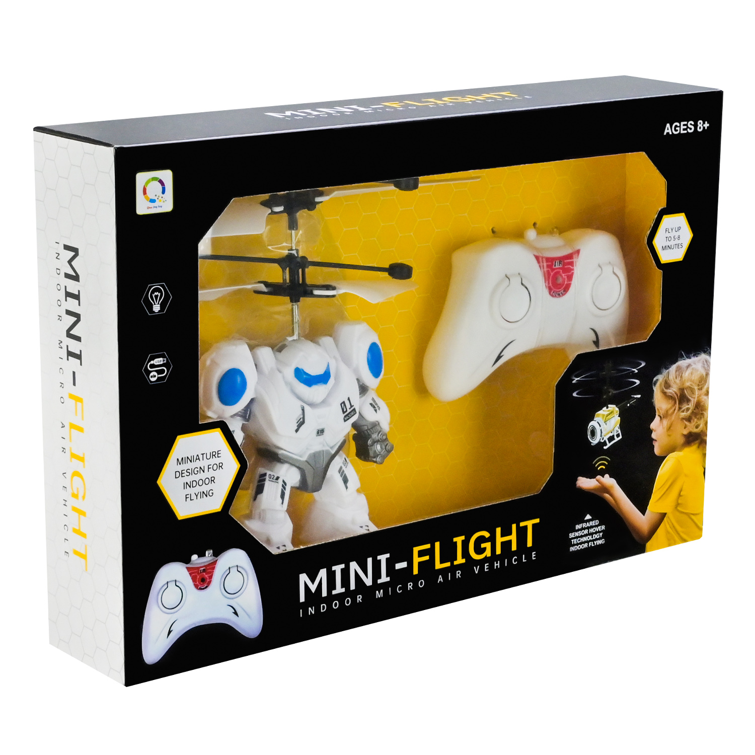 •Світлові ефекти робота при польоті додають вражень, а його стильний дизайн робить іграшку привабливою для дітей.