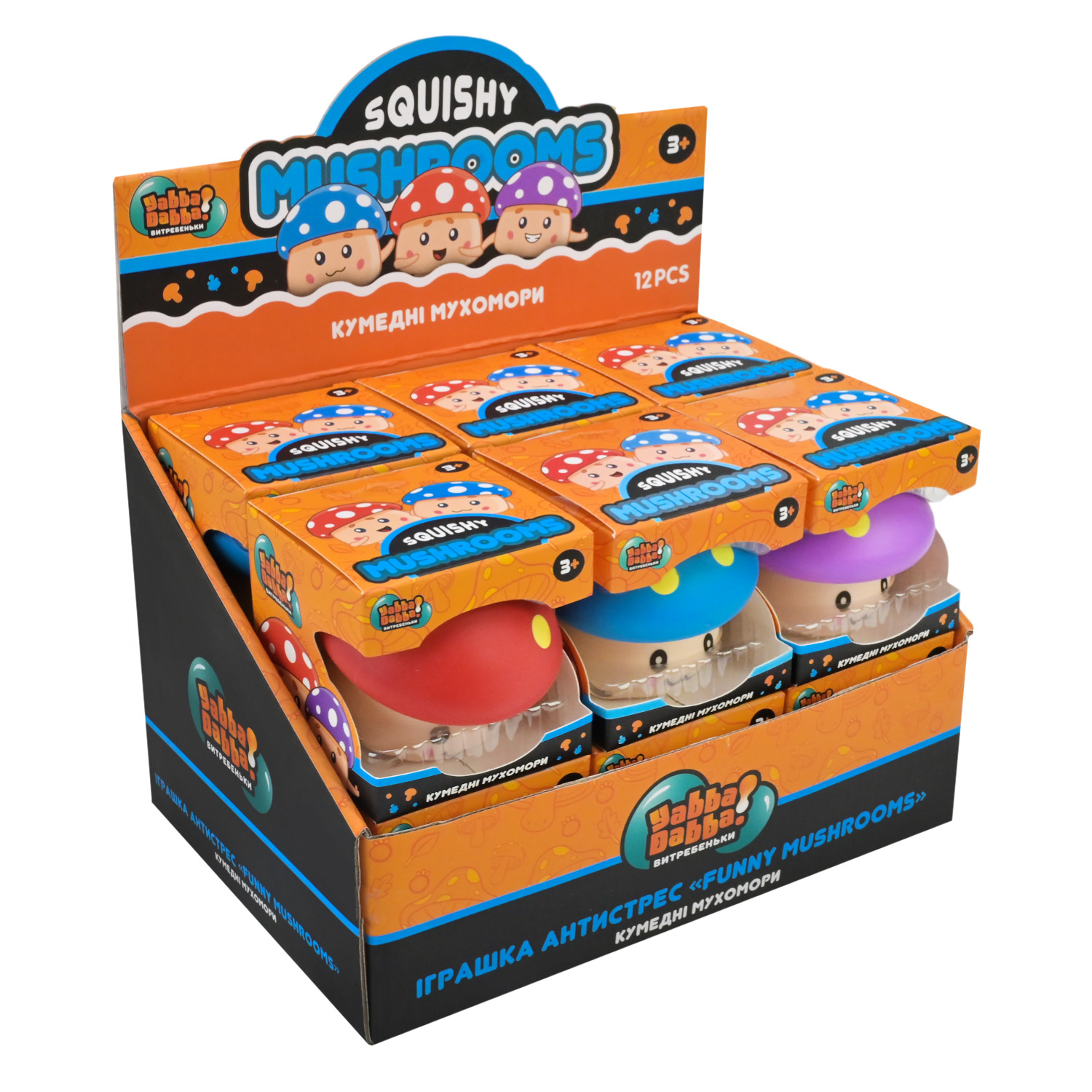 Антистрес YabbaDabba арт. YD2523 (72шт) грибочок 6см 3 кольори 12шт короб. 6,5*6,5*6,5см, дисплей 21*14*15см