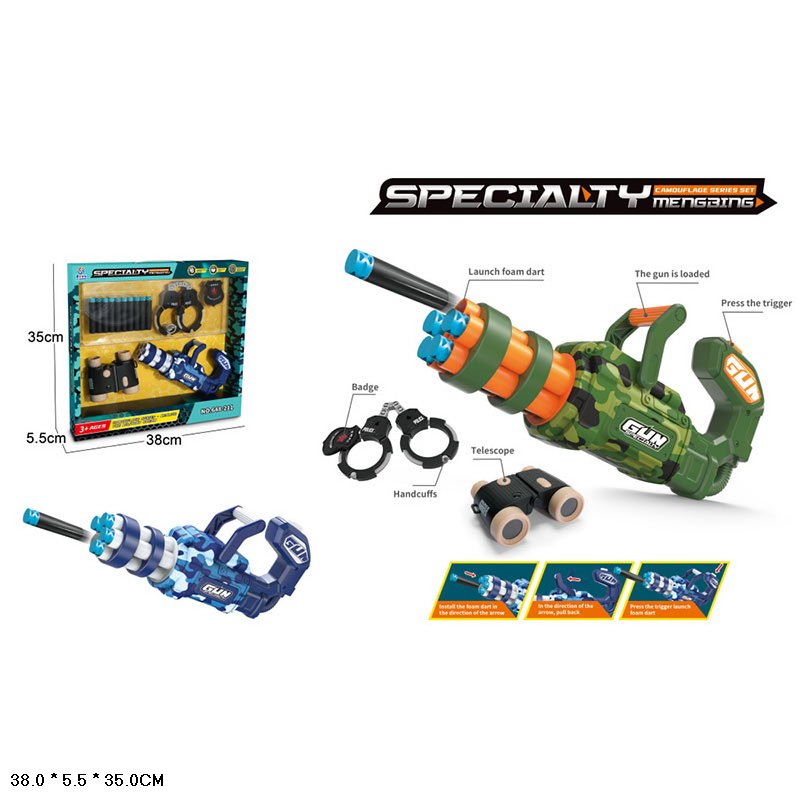 Ігровий набір арт. 648-211 (24шт) 2кольора, зброя,бінокль,наручники,знаряди, короб. 38*5,5*35см