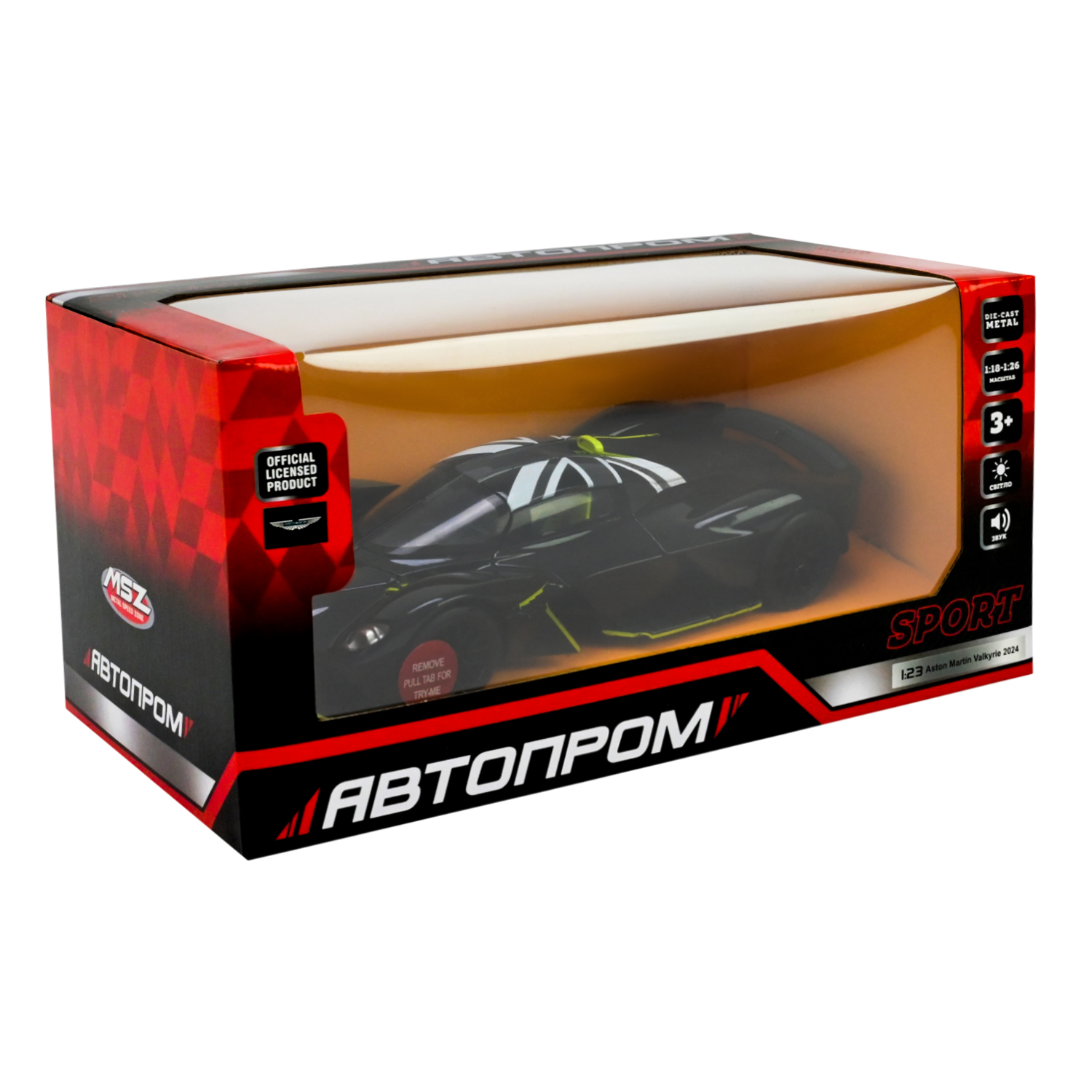 Машина АВТОПРОМ мет. арт. 661298A (12шт/2) 1:23 Aston Martin Valkyrie 2024, бат,світло,звук,відкр.двері,у короб. 24,5*12см
