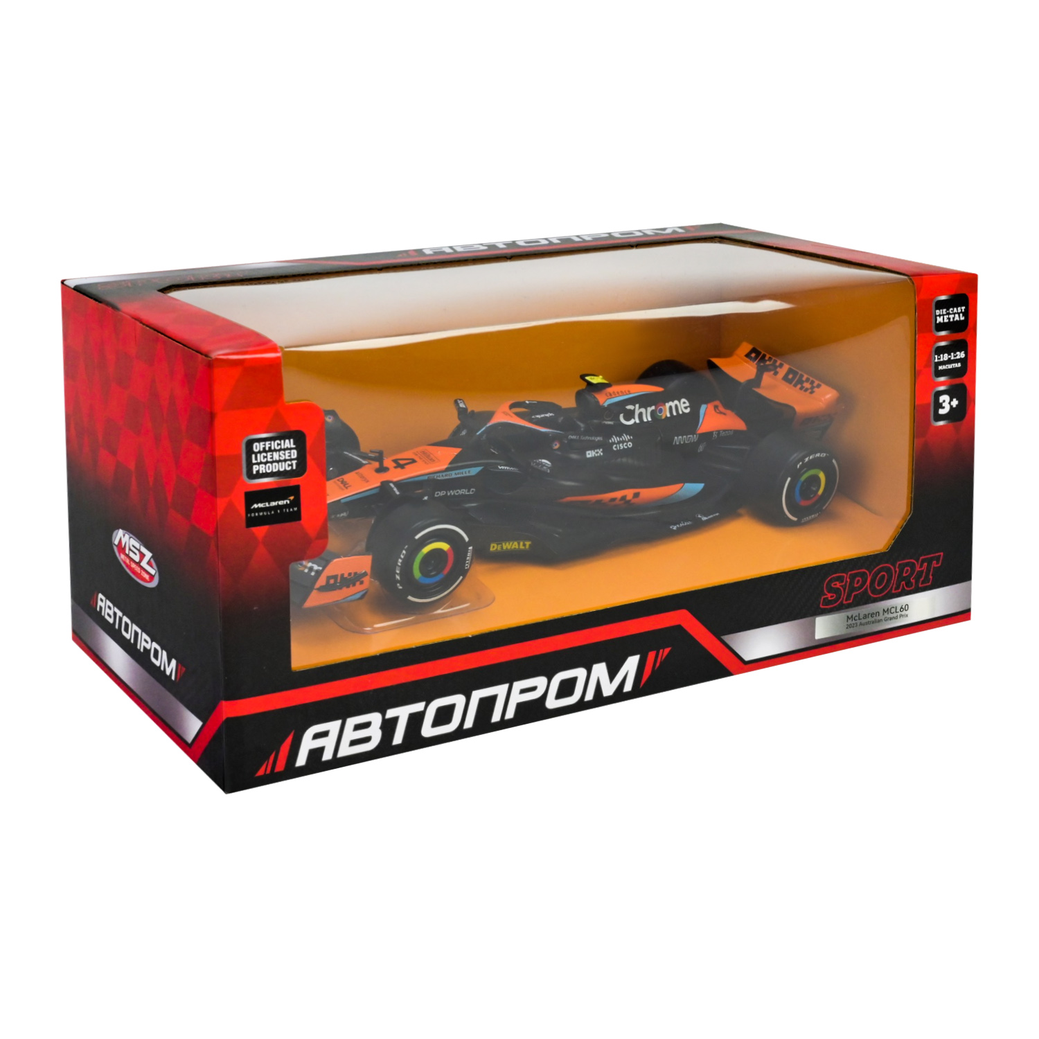Машина АВТОПРОМ мет. арт. 68287A(B) (12шт/2) 1:24 McLaren MCL60 (2023 Australian Grand Prix),у короб. 24,5*12см