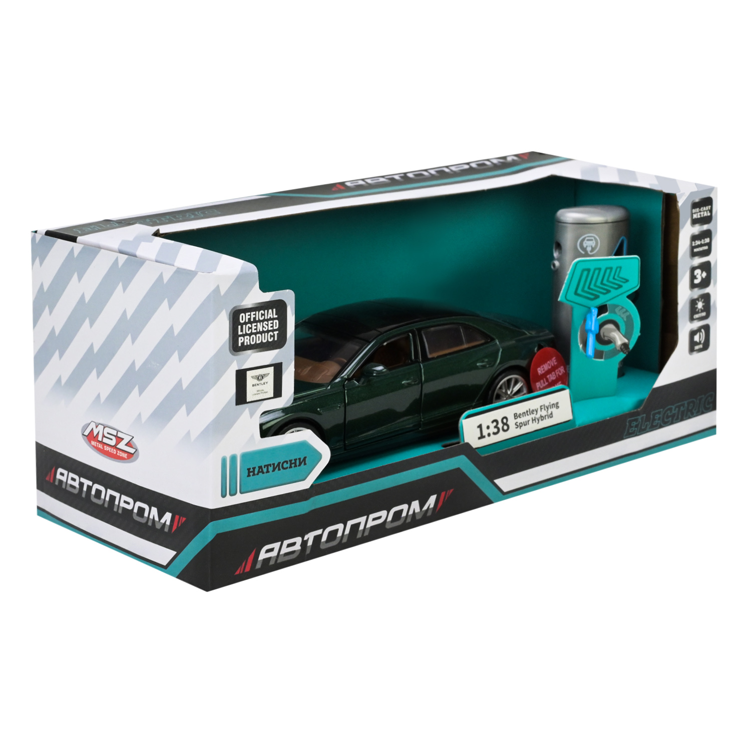 Машина (електро) мет. АВТОПРОМ арт. 68718G (32шт ) 1:38 «Bentley Flying Spur Hybrid»,батар.,світло,звук,відкр.двері,капот,багаж., короб.