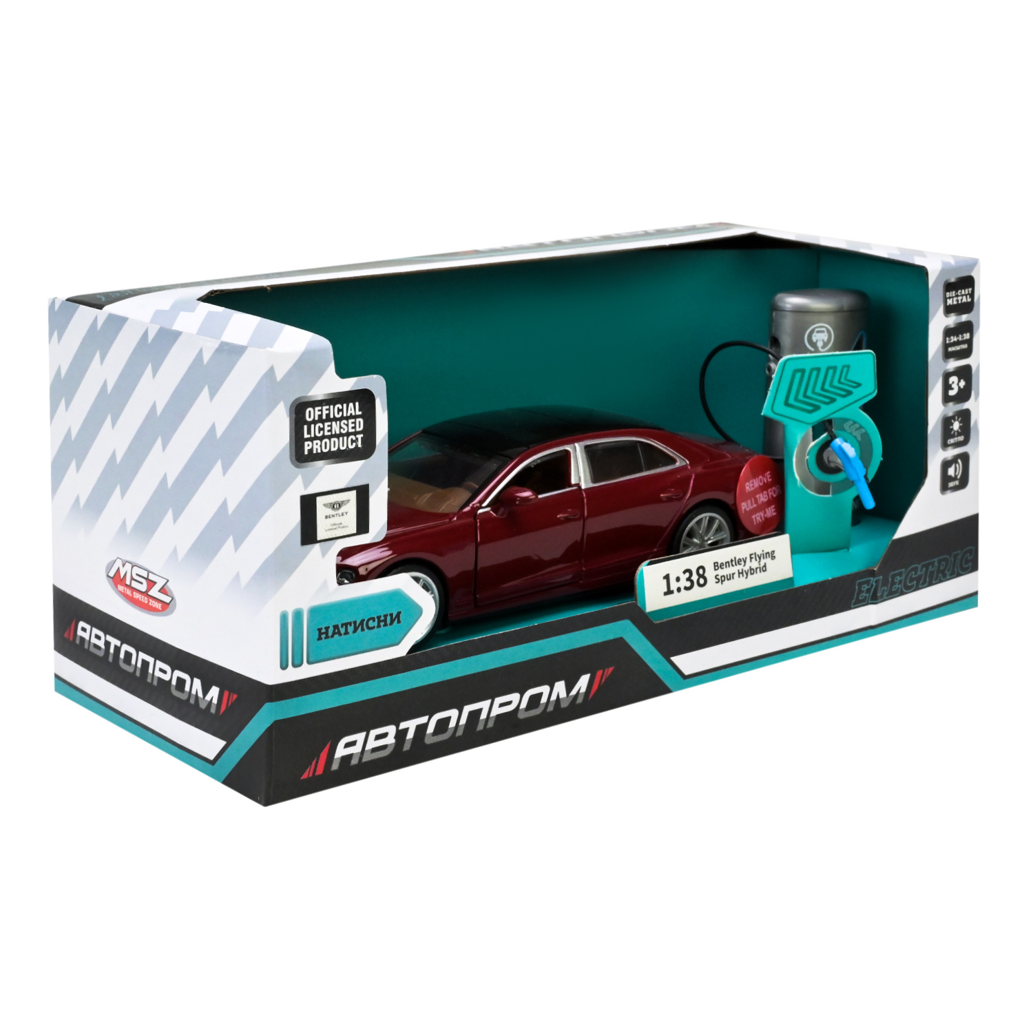 Машина (електро) мет. АВТОПРОМ арт. 68718R (32шт) 1:38 «Bentley Flying Spur Hybrid»,батар.,світло,звук,відкр.двері,капот,багаж., короб.20,5х9х9 см.